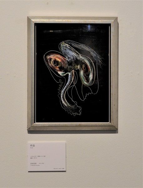 瑛九《宇宙》1959年、油彩、カンヴァス、右上に「QEi 59」のサインあり瑛九《海》1955年、エッチング、紙、右下に「Q」のサインあり
