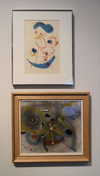 次の2点は、リトグラフと油彩画と媒体は異なるが、制作年が近く、共通のイメージがいくつか認められる。赤・黄・青で色分けされた層が重なりあい、画面中心部にはアメーバのように浮遊するモチーフがある。