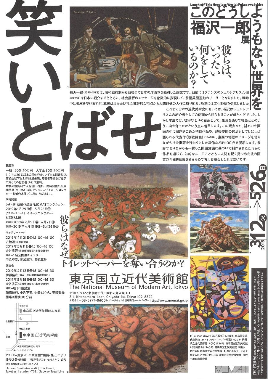 東京国立近代美術館の「福沢一郎展 このどうしようもない世界を笑いとばせ」についての展覧会レビューは長年福沢一郎の研究に取り組んでこられた伊藤佳之さんのエッセイをぜひお読みください。