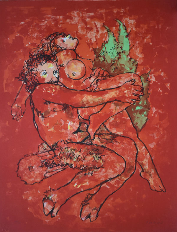 福沢絵画の特徴である強烈な色彩、量感あふれる人体表現は版画においても見事に結実しています。