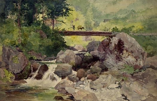 「養沢 西の橋」吉田博は昭和22(1947)年、太平洋画会会長に就任。第三回日展の審査員も務めたが昭和25(1950)年4月5日に74歳で死去した。油絵も魅力的であるが、やはり水彩画や木版画の透明感は格別である。戦後の占領期に日本に滞在したアメリカ人たちから人気があったのも頷くことができる。