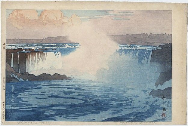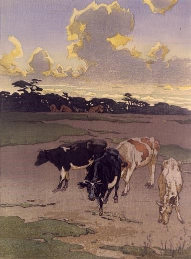 吉田博は明治9(1876)年福岡県久留米市の生まれ。京都で洋画を学び、三宅克己の影響で水彩画を描き始める。初めての渡米は明治32(1899)年のこと。中川八郎とともに渡米、デトロイト美術館とボストン美術館での展覧会に参加している。その後、イギリス、フランス、ドイツ、イタリアなどを歴訪した。明治35(1902)年、吉田の発案により太平洋画会を満谷国四郎や中川八郎とともに結成した。吉田は早くから風景を題材にした作品を描いたが、特に山岳や建物をモチーフにすることを好んだ。従い、息子の名前に穂高を選んだのだろう。大正9(1920)年、新版画の版元の渡辺庄三郎と出会い、渡辺木版画舗から木版画の出版を始めた。透明感のある色彩と光の表現が美しい作品である。