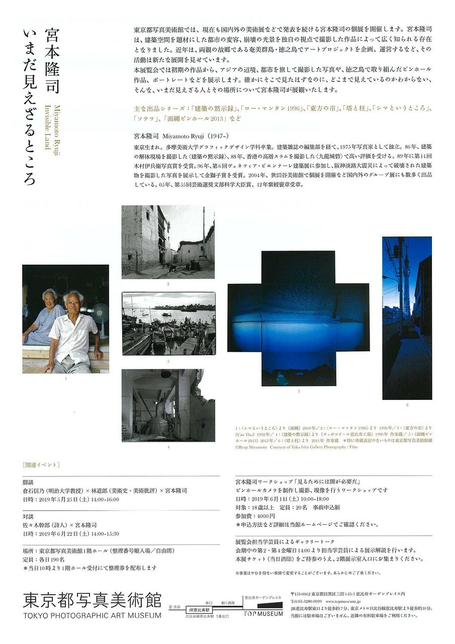 展覧会概要:東京都写真美術館では、現在も国内外の美術展などで発表を続けている宮本隆司の個展を開催します。宮本隆司は個展「建築の黙示録」によって広く知られる存在となり、建築空間を題材にした独自の作風は国際的に高い評価をうけています。