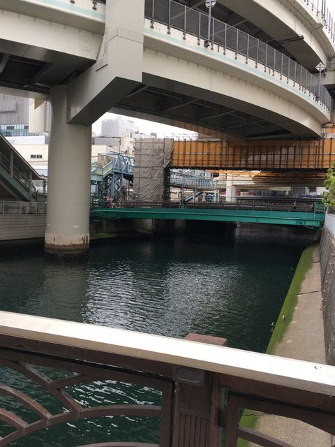 線路に掛かる跨線橋横浜駅周辺は1980年代前半に始まった「みなとみらい21事業」によって開発され、その様相が大きく変わってしまった。だが、高速道路が建設され、近くに大型の商業施設ができても、さすがに川の河口の場所を大きく変えることはできなかった。川のある駅北側周辺の地形はあまり変わっていない。