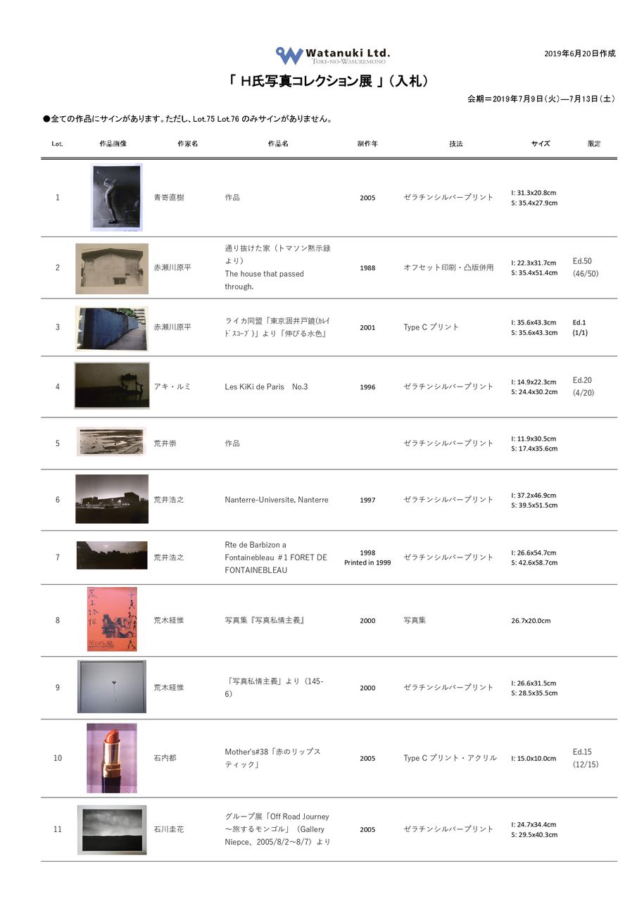 また、取り扱いギャラリーさま、作家ご本人さま等、誤りにお気づきのことがありましたら、その旨お知らせいただければ幸いに存じます。早急に訂正させていただきます。(H拝)