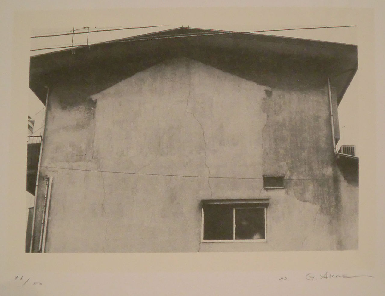 これは2018年02月13日付の「ときの忘れもの」ブログ「トマソン黙示録」にあるように、1988年に佐谷画廊から14点組、限定50部として刊行されたものの一つ(46/50)である。タイトルは「トマソン黙示録 より『通り抜けた家』」、1988年、オフセット印刷、エンボス、イメージサイズ:22.3x31.7cm、シートサイズ:35.4x51.4cm、Ed.46/50 Signed、ということになる。