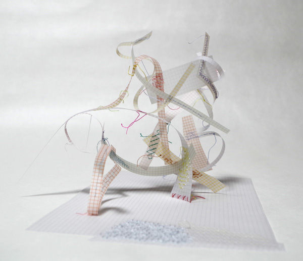 ・4月のときの忘れもののグループ展に出品した中村潤(b.1985)は、京都で制作活動を行なっており、今回ART OSAKAに合わせてトイレットペーパーを編んで造形したものや方眼紙を刺繡糸で刺したオブジェなど制作しました。連日会場におりますので、是非お声がけください。