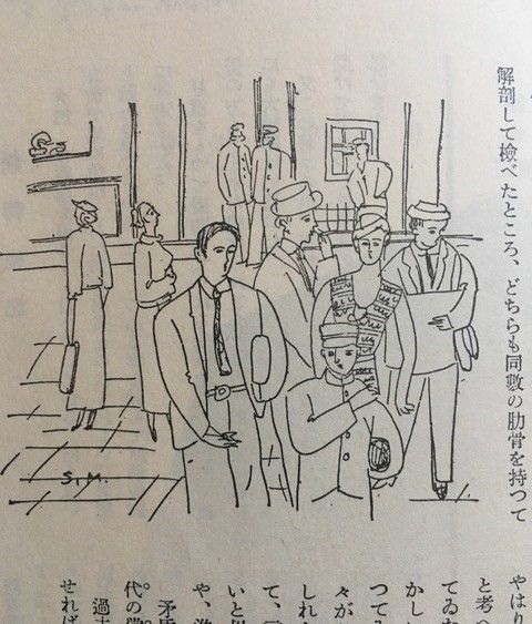 挿絵は建物、人物、群像の3点が載っている。人物像には太い線が使われていることに注目しておきたい。