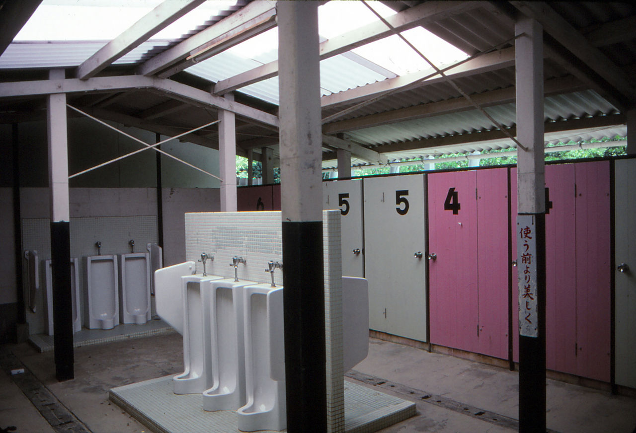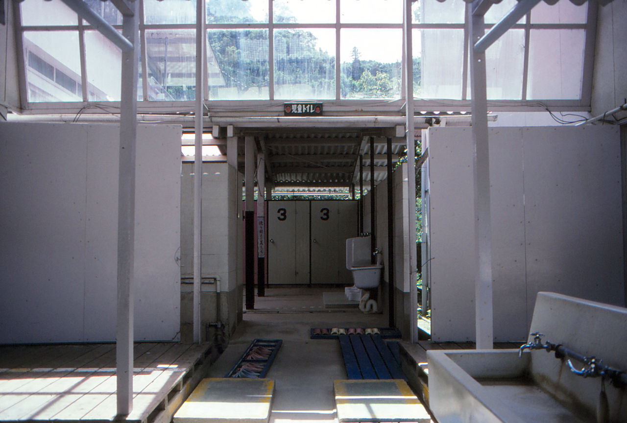 中校舎と東校舎の間にある便所。改修工事で作り直した