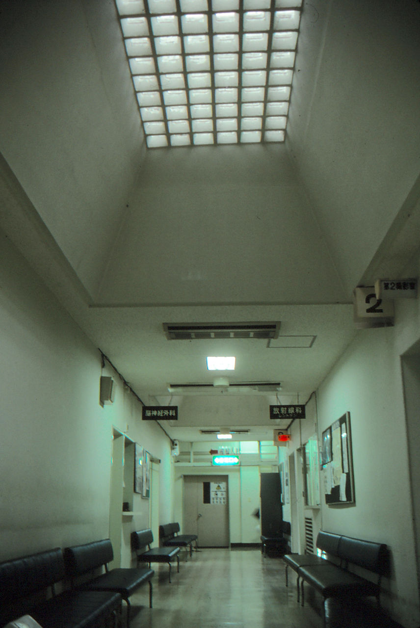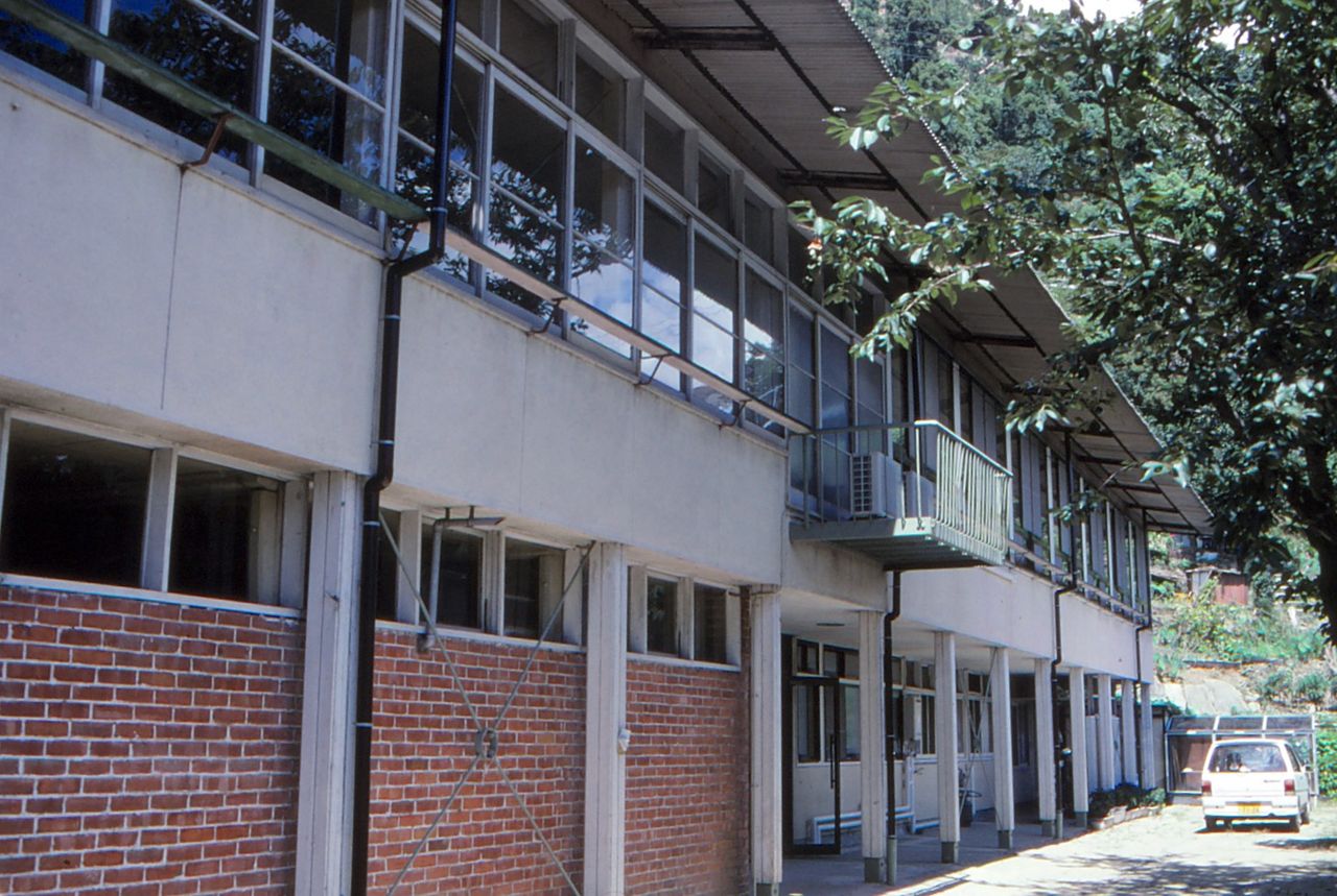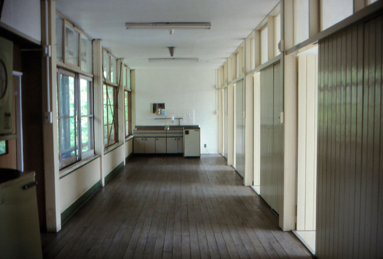 しかも現役だった。後で調べると、この施設の管理者は病院ではなく地域に作られた組合であり、入院患者はいなくても施設としてはまだ生きているということがわかった。この上空を通るバイパス工事のため2001年に解体されたので、松村が設計した病院関連施設を見る貴重な機会だった。