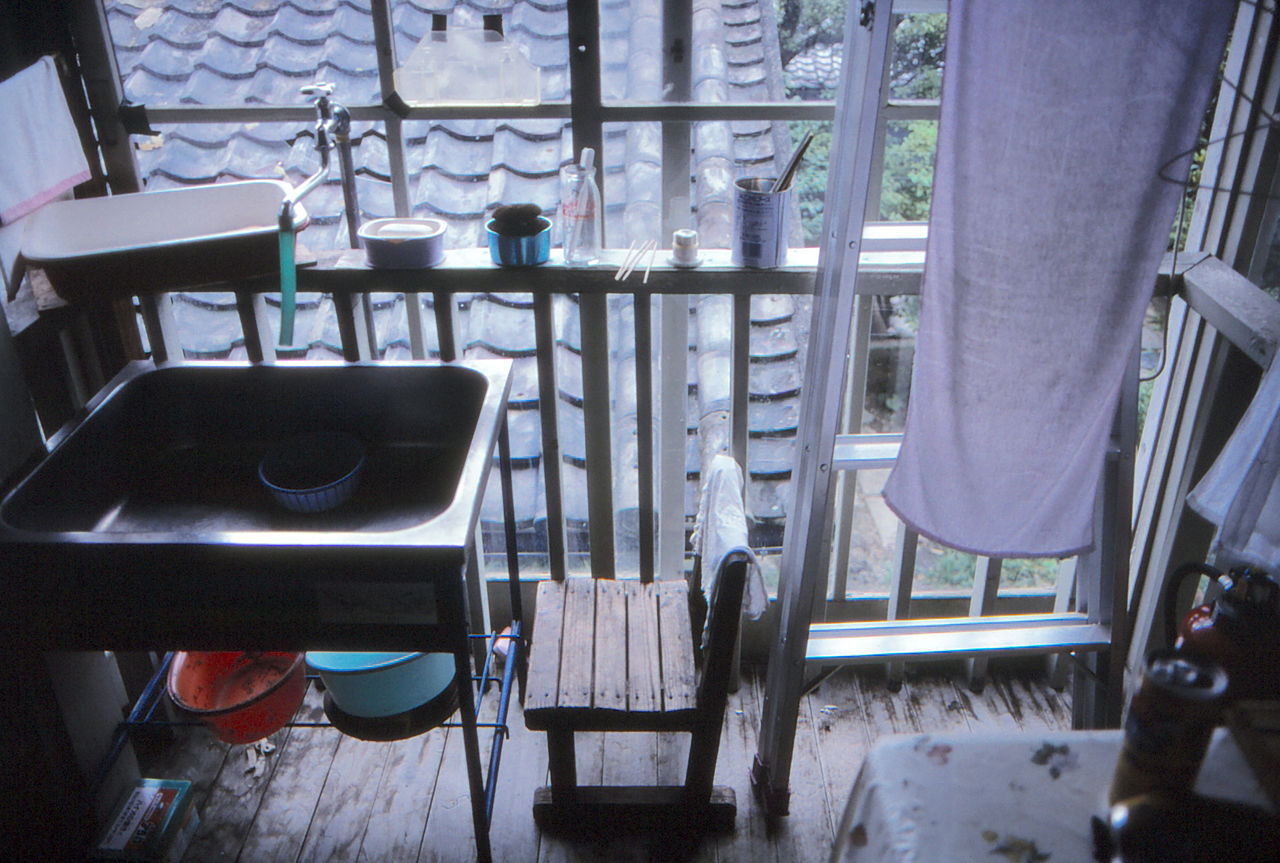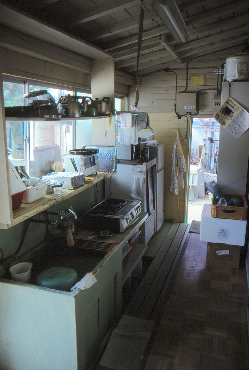 宿直室の台所さらに、八幡浜駅近くの江戸岡小学校(1953年・55年完成)を再訪した。日土小学校よりも規模が大きく、堂々とした雰囲気にあらためて驚き、夕日を浴びた美しい姿をたくさんの写真におさめた。この建物も今はない。