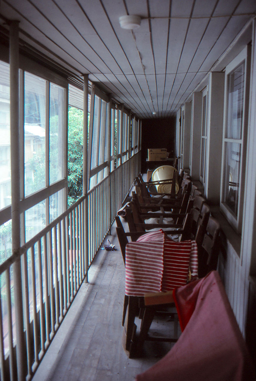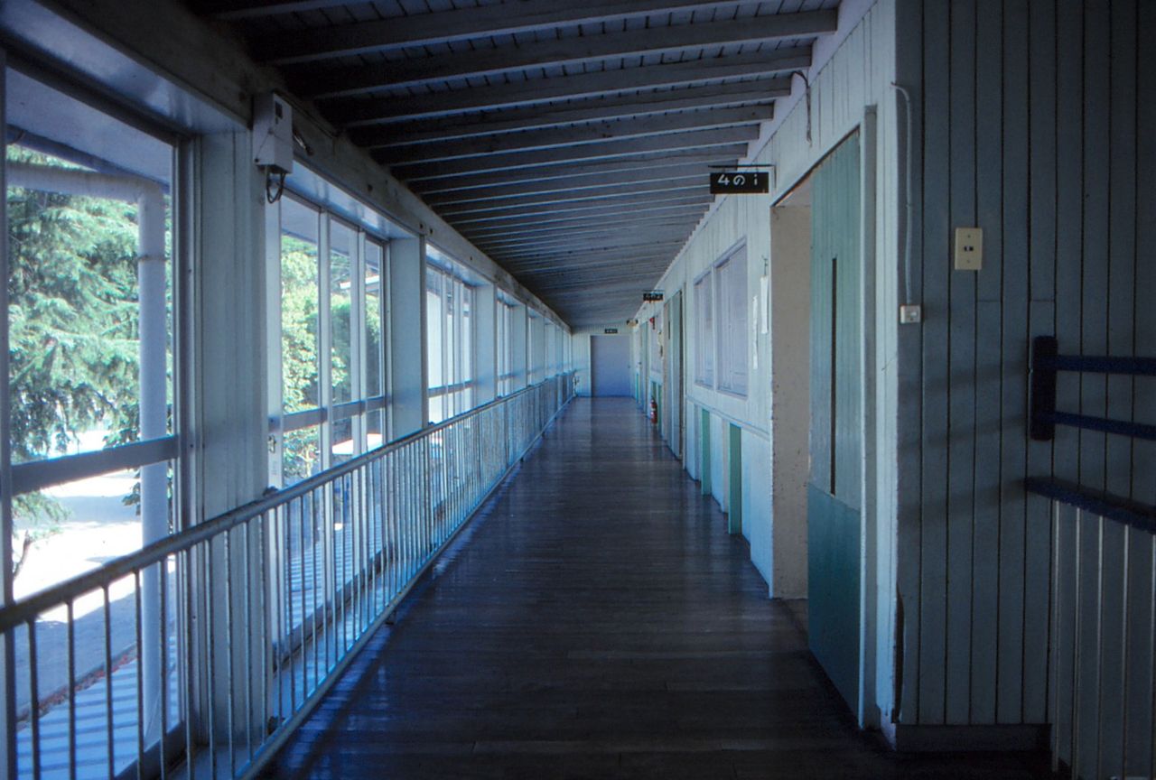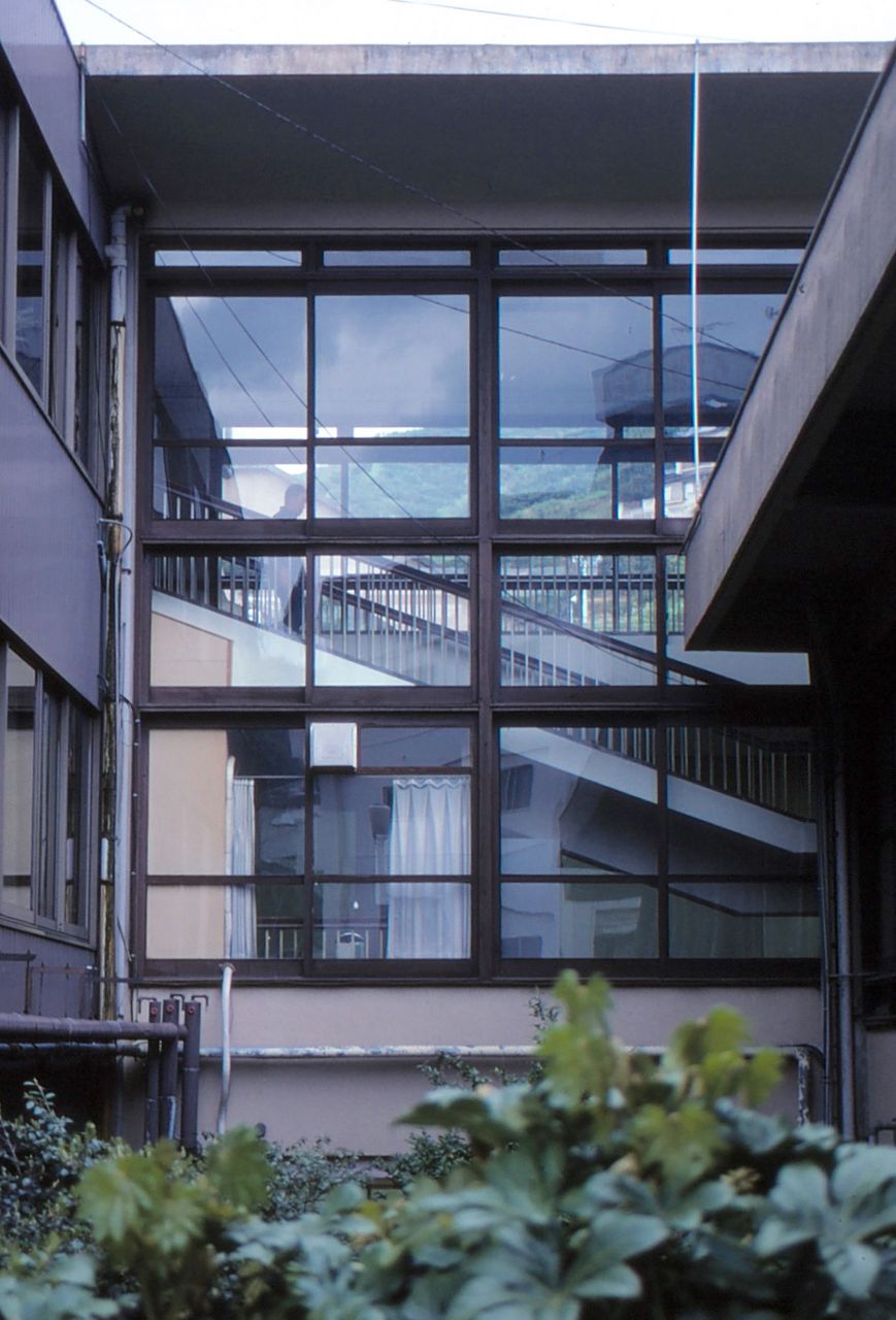 廊下その後も八幡浜を訪れた際にときどき会い、こちらのやっていることを説明した。松村はこの病院の看護婦寮も設計したので(「市立八幡浜総合病院看護婦寄宿舎」として『新建築』1956年5月号に掲載)、知っているかと尋ねたら、「独身の頃はそこに住んでたのよ」と答えられ、このときも不思議な気持ちがした。その後、彼女には市立八幡浜総合病院竣工当時のパンフレットを手に入れてもらい、そこに掲載された配置図が松村の病院関連施設の仕事の全体像を把握する助けになった。