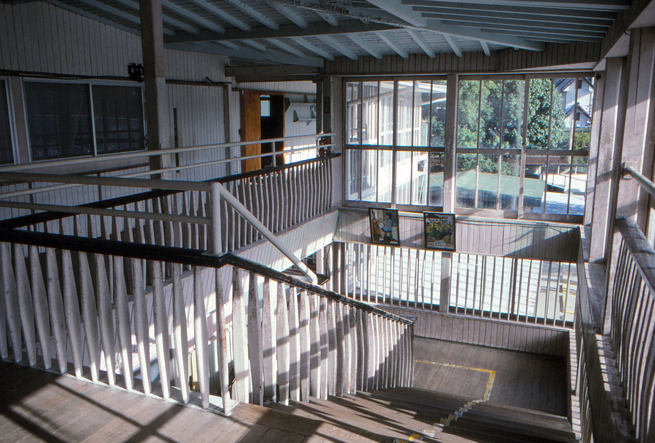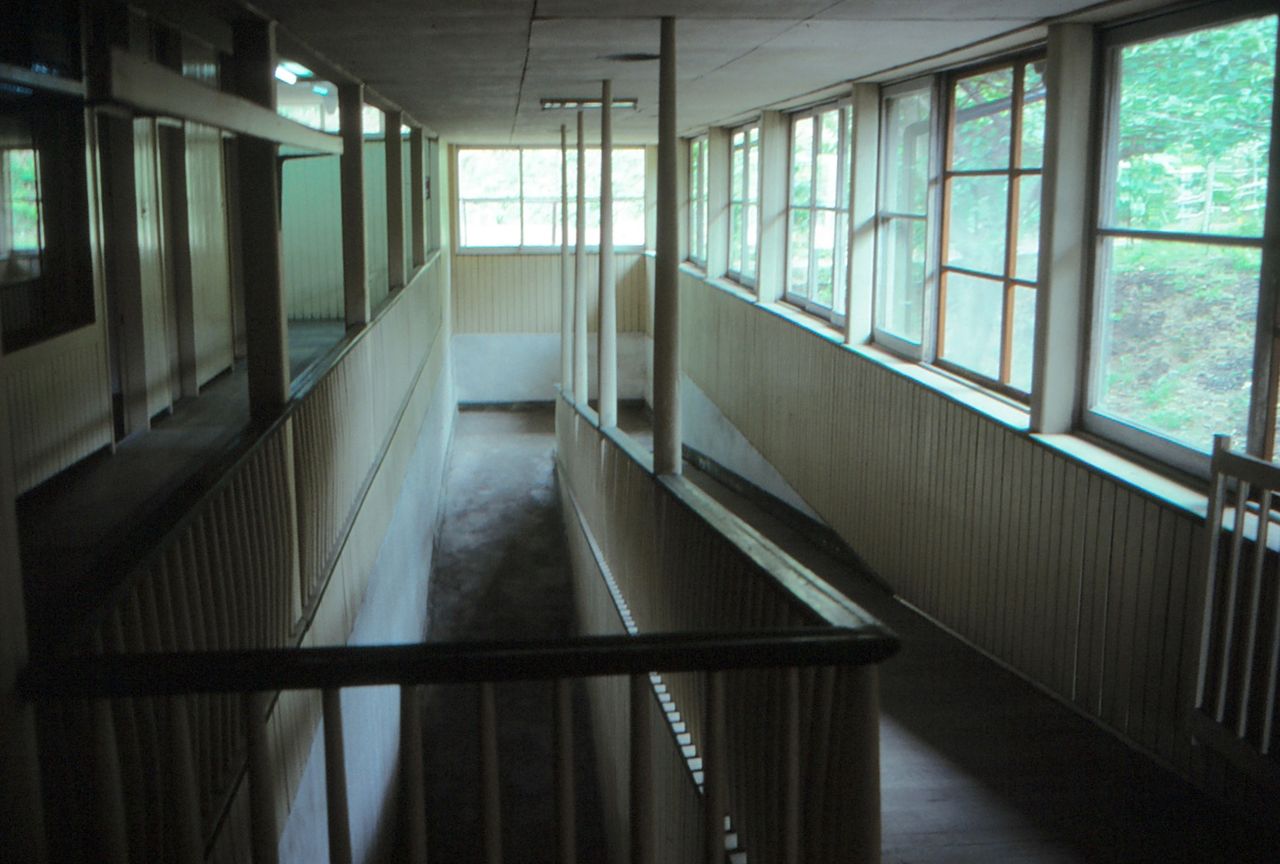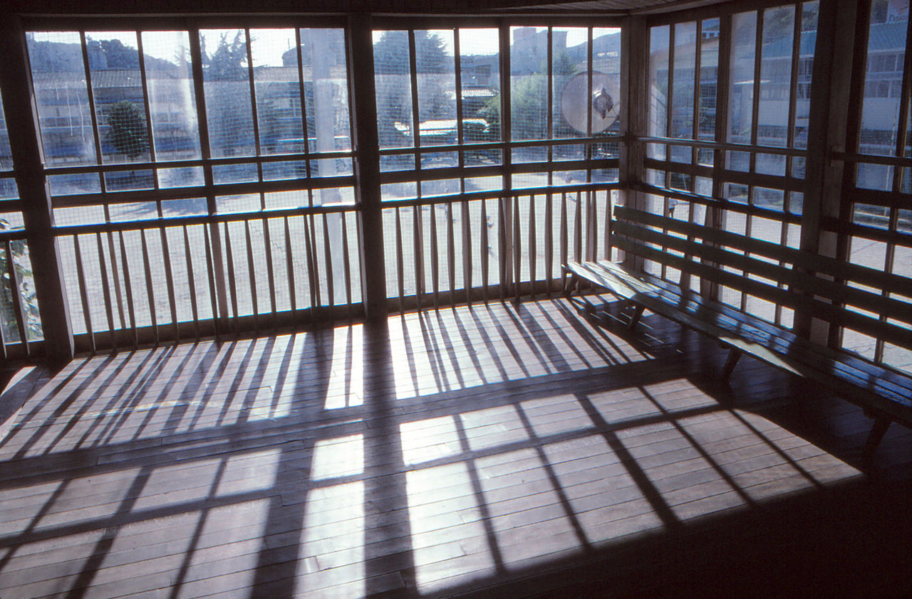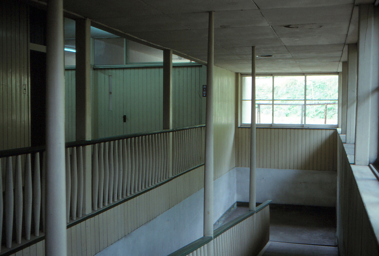 特別の下調べもしていなかったため、とにかく駆けずり回って写真を撮った。ゆったりしたスロープ、紡錘形の柱や手摺子、上から注ぐ淡い光など、実に印象的だった。伝染病患者の隔離施設という特殊な用途だからこそというべきか、日土小学校とは違う内向的な空間で、夢の中にいるような気持ちになったことをよく覚えている。
