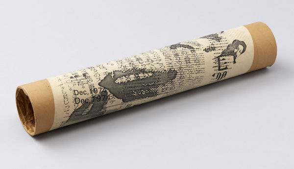 次に「trace」「TRACE」の2シリーズ。シルクスクリーンの「trace」は島独自の方法論「触覚的遠近法」を用い、まず床に敷いた和紙に椅子を一脚ずつトレースする。これには「幾何学的透視図行為表現」でも使用した、滑車つきの巨大コンパスを使う。それから和紙を指で破いたり折ったりして紙上に構成したもので下絵を作り、シルクスクリーンで刷る。多重の輪郭線は破いた紙の縁、紙に重なるインクの線、紙の裏写りの線まですべてトレースしたからである。《trace23》が同館所蔵品。絵画における三次元的表現の虚構を見せつけ、じかに触れて写しとった実体のゆらぎと現実感を呈示する。さらに平面オブジェの「TRACE」シリーズで、「trace」のイメージの層をシルクスクリーンによる木板で構築した。板が紙のインクの層を表現している。遠目には乱暴に打ちつけられた椅子らしい形が、近寄ってみると丁寧にカットされ丸棒で底上げされ、細やかでシステマチックな作業を施されている。この落差がじわじわとユーモラスに迫ってくる。作品を収める木箱まで自作だそうだ。「TRACE」は9点のシリーズで「信州の現代版画Ⅲ」では全点が公開された。