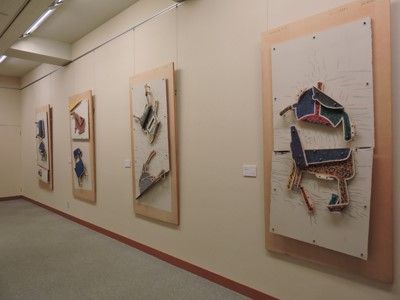 須坂版画美術館企画展会場は2部屋で、所蔵するシルクスクリーン8点を中心に1988年~2016年の水彩画・平面オブジェ全22点と、制作過程を示す未発表資料が展示されている。学芸員の梨本有見さんにお話を聞いた。