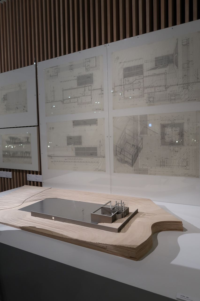 今回の展覧会にて展示されている安藤忠雄の実施図面は、これまでにも時折公開されている。おととしの国立新美術館での展覧会でも展示され、書籍にも頻繁に掲載されてきた。とはいえ、会場に原図が数多く並ぶさまは圧巻であるし、印刷物と実物とではその迫力がまるで異なる。手書きの図面には、その図面を描いた人間の息遣いが感じられ、精緻な図面を仕上げるために捧げられた肉体的、精神的エネルギーには、自然と頭が下がる。また、設計用の原画だけの建築家の展覧会はあまりない。というのも一般的に実施用の図面は資料性を抜きにすればそれほど見て面白くはないからである。しかし、安藤の原画は十分に鑑賞に堪えられるだけの質を有している。