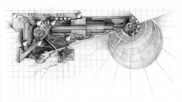 フリーデンスライヒ・フンデルトヴァッサー、ル・コルビュジエ、マイケル・グレイヴス、磯崎新、安藤忠雄、六角鬼丈ら建築家のドローイングや版画を展示します。