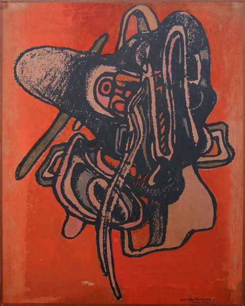 キース・へリングは、80年代初頭、ニューヨーク地下鉄構内でドローイングを始めた。その後壁画に取り組むようになり80年代後半にはニューヨークにポップショップを開く。地下鉄構内、壁画、ポップショップ、いずれも、ミュージアムやギャラリーで一部の人が享受するアートではなく、年代・性差・経済力の垣根を問わず誰でも見られるもの、多くの人の目に触れて安価で手に入るものを目指し、公共の場をカンバスに不特定多数の人々とコミュニケーションを試みたアーティストだった。非合法とされるグラフィティは、ゲリラ的に短時間で素早く描くため、キースの代名詞ともなる簡略化されたモチーフが生まれた。これらの人型も生き物の形も一筆書きで描かれる単純な図像で、それらが生き生きと組み合わさって広がってメッセージが発されている。キースは学生時代に記号論を学んでおり、こうした親しみある図像だけでなく、ポップショップでは解読困難な原始的な文字のような記号で床壁天井を埋め尽くした。今回の所蔵品展は、キースの一連の活動を紹介しつつ、80年代後半から夭逝するまでのポピュリズム要素の強い作品に重きが置かれた内容だった。