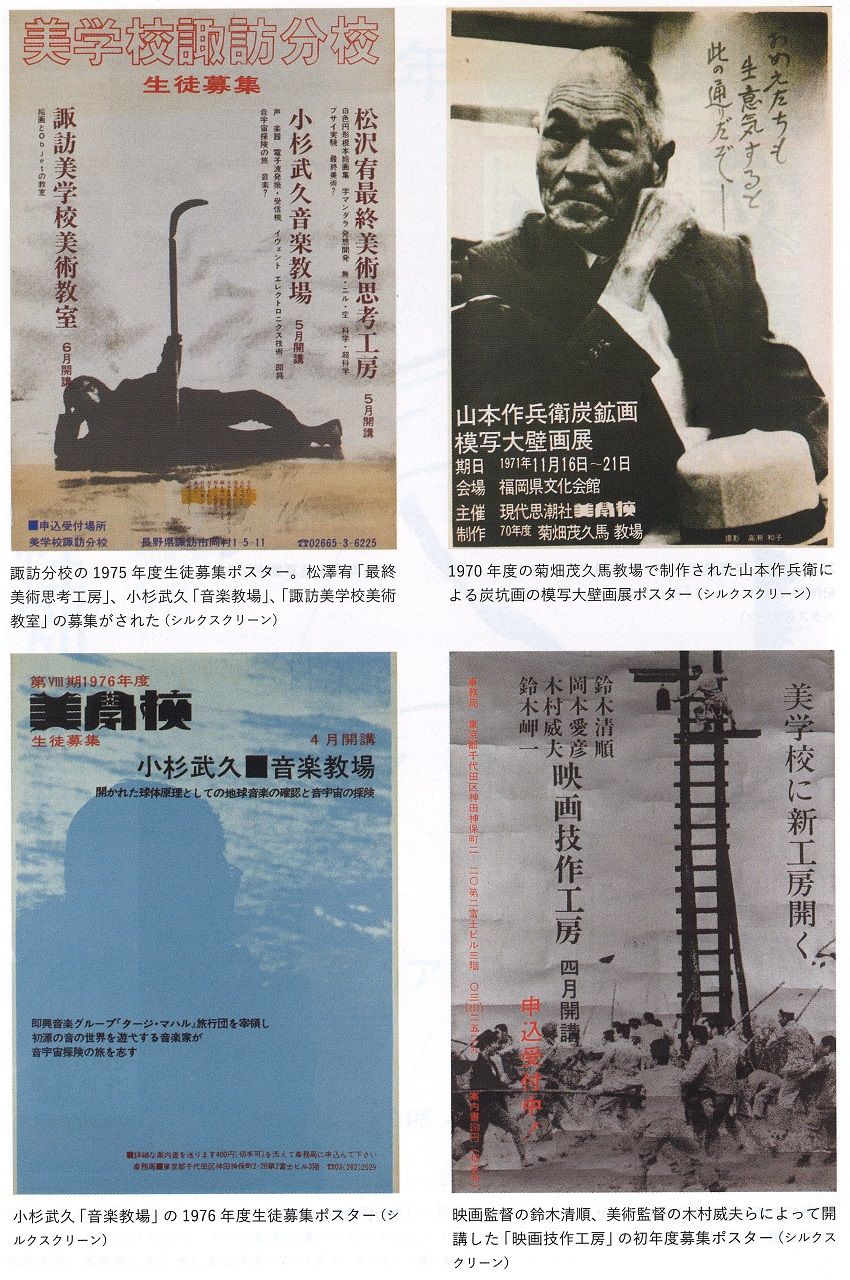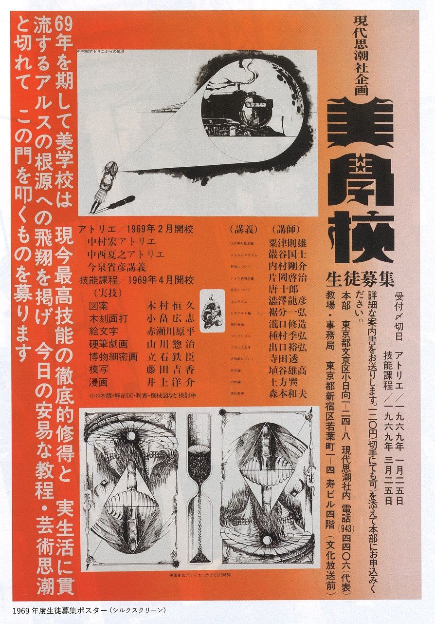 美学校は1969年、現代思潮社によって設立。開校当初の講師には、赤瀬川原平、中村宏、中西夏之、松澤宥、菊畑茂久馬、木村恒久、澁澤龍彦、巖谷國士、埴谷雄高らが名を連ね、以降も、小杉武久、鈴木清順、木村威夫、吉田克朗など、一線の表現者が教壇に立ってきました。