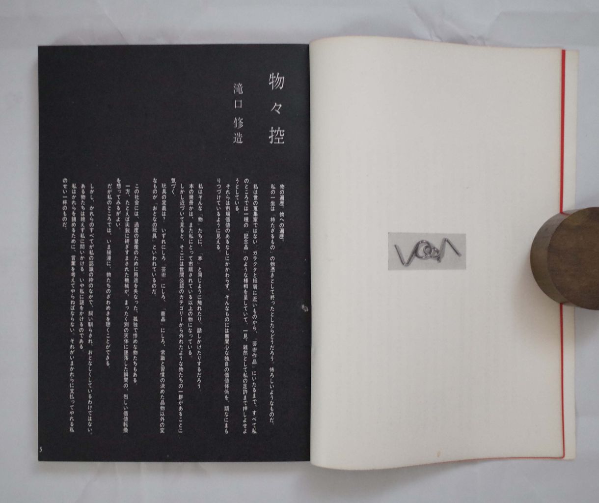 以上のように、本書は展覧会パンフレットや案内状などに発表された序文や詩、私信などを収録した「序文集」であり、作家に寄り添う姿勢で書かれている点で、それまでの「評論集」とは大きく異なっています。瀟洒で軽快な装幀に反して、造形の根源を問うという深く重い内容をもった、「画論集」の性格も色濃くもっています。「詩人・美術評論家」という枠を越えた、1960年代中頃の姿を生き生きと留めているという点からも、最も重要な著作の一つであり、おそらくは瀧口快心の一冊ということができるでしょう。