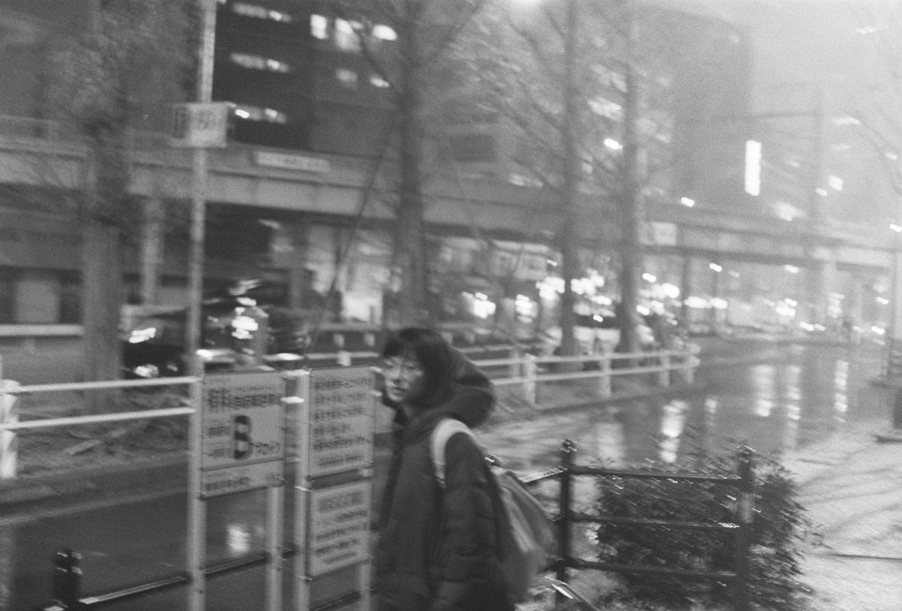 反対側の歩道にはビルが並んでいて、窓からもれる明かりはどれも揺れたり、流れたりしている。