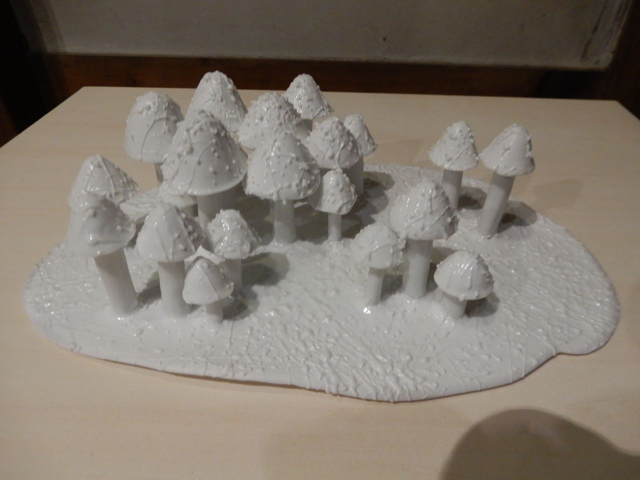 まず最初に見たのは工藤利恵の陶器作品。白磁のきのこである。蔵の白壁と調和していて面白い。最初に出会う作品の印象がその展示の印象を左右することも多いが、工藤の作品から見ることになってよかった。インスタレーションのように蔵の1Fを埋めたきのこたちの印象は旅の印象を決定づけたのかもしれない。ちなみにカフェでコーヒーをいただくこともできた。坂をくだると市電の函館ドック駅。そこで市電に乗って末広町にゆき次の会場であるHakoBa函館に着いた。