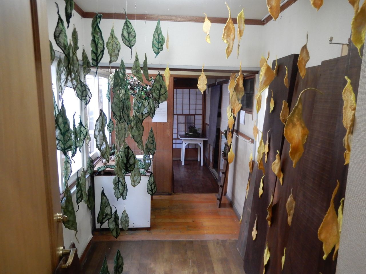 翌21日は最終日である。午後には妻の実家のある森町に向かうので、道南いさりび鉄道を上磯駅まで行ってみることにした。偶然にも「濃緑車両・キハ40 1810」に乗車することになった。これは車両自体が展示会場なのである。石川潤の作品が車内を飾っていた。車両は函館山を海の向こう側に見る上磯駅についた。上磯では駅の待合室と駅事務室が展示場だ。待合室には丸岡明子が北海道の植物を封じ込めたインスタレーションを展示。事務室には遠山美月が和紙を素材にした空間構成を行っていた。二人ともに風を感じさせる展示であり、光を感じさせる展示を行っていたのが不思議な符合であった。