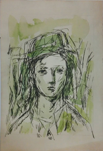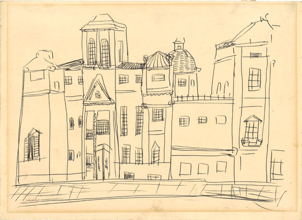 ■松本竣介(1912-1948) 東京に生まれ、2歳のときに岩手に移り少年時代を盛岡で過ごす。1935年前衛グループNOVAの同人となり、二科展に 初入選。翌年松本禎子と結婚し、二人で月刊の随筆雑誌『雜記帳』を創刊する(綜合工房刊、14号で廃刊)。戦時中は1943年靉光や麻生三郎、寺田政明ら同志8名で新人画会を結成し、第3回展まで開催した。戦後1946年美術家組合を提唱、戦争に疲れ沈退した全日本美術家の提携再起を促した。1947年自由美術家協会に新人画会のメンバーと共に参加し、翌1948年毎日新聞主催の連合展に「彫刻と女」「建物」を出品、これが絶筆となり、僅か36歳の短い生涯を終えた。