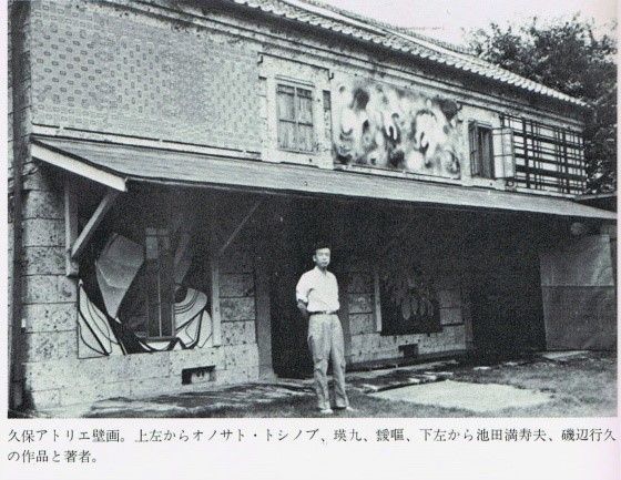 真岡の久保アトリエの前に立つ久保貞次郎先生