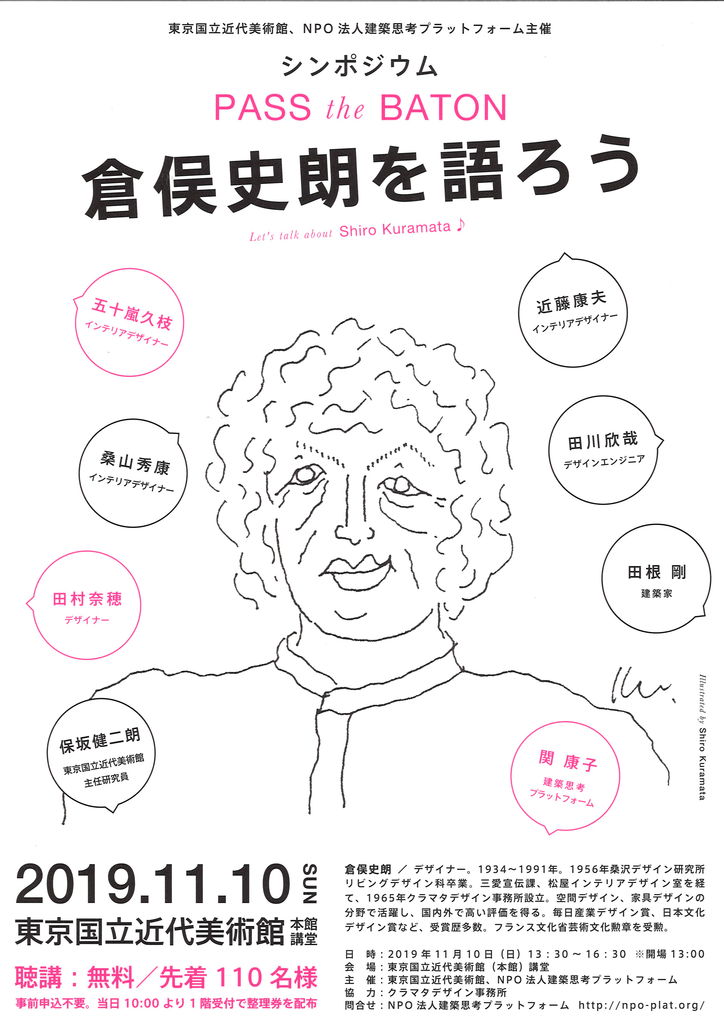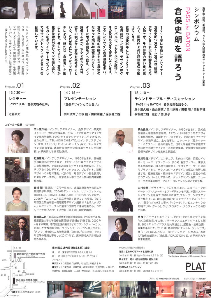 東京国立近代美術館とNPO法人建築思考プラットフォーム主催によるシンポジウム「PASS the BATON 倉俣史朗を語ろう」が11月10日に開催されます。