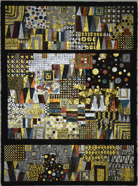 箔画/紙、漆、金・銀・プラチナ箔、石炭、樹脂、アクリル絵具