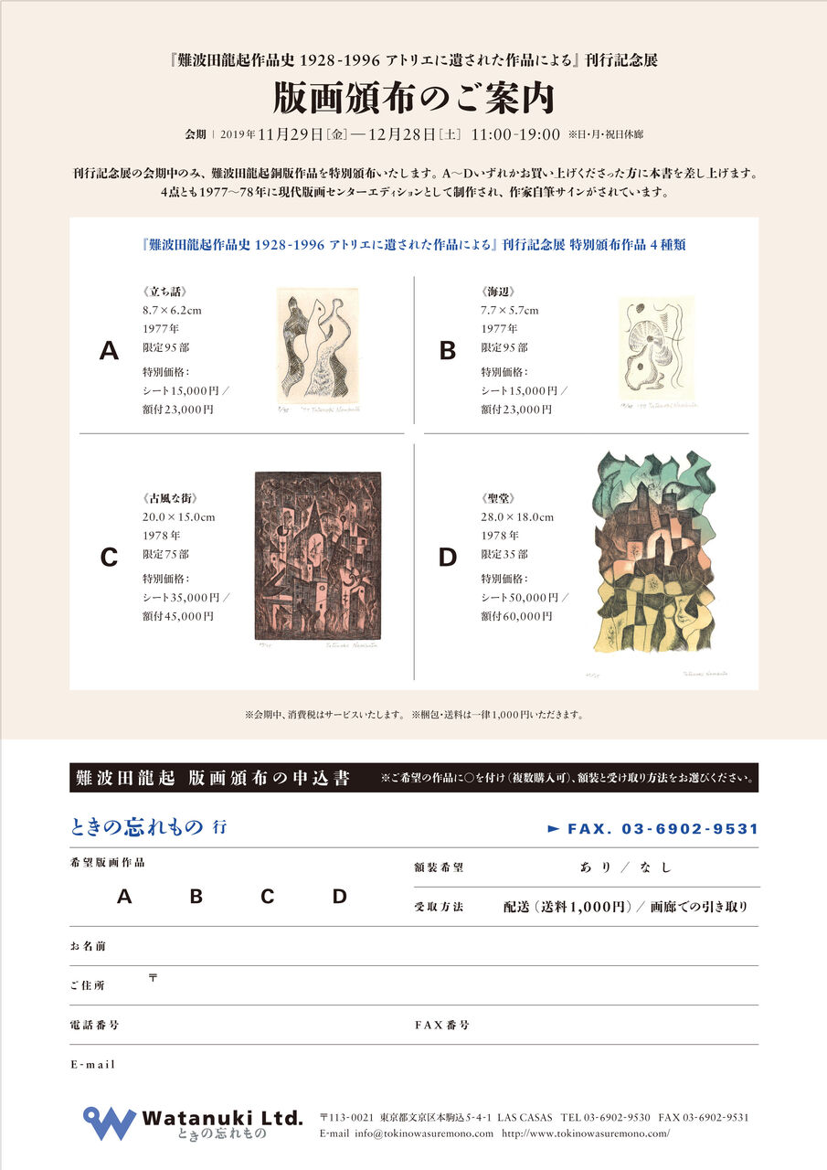 今回、刊行記念展を開催し、難波田先生の版画作品をお買い上げの方に本書を差し上げる機会を設けました。