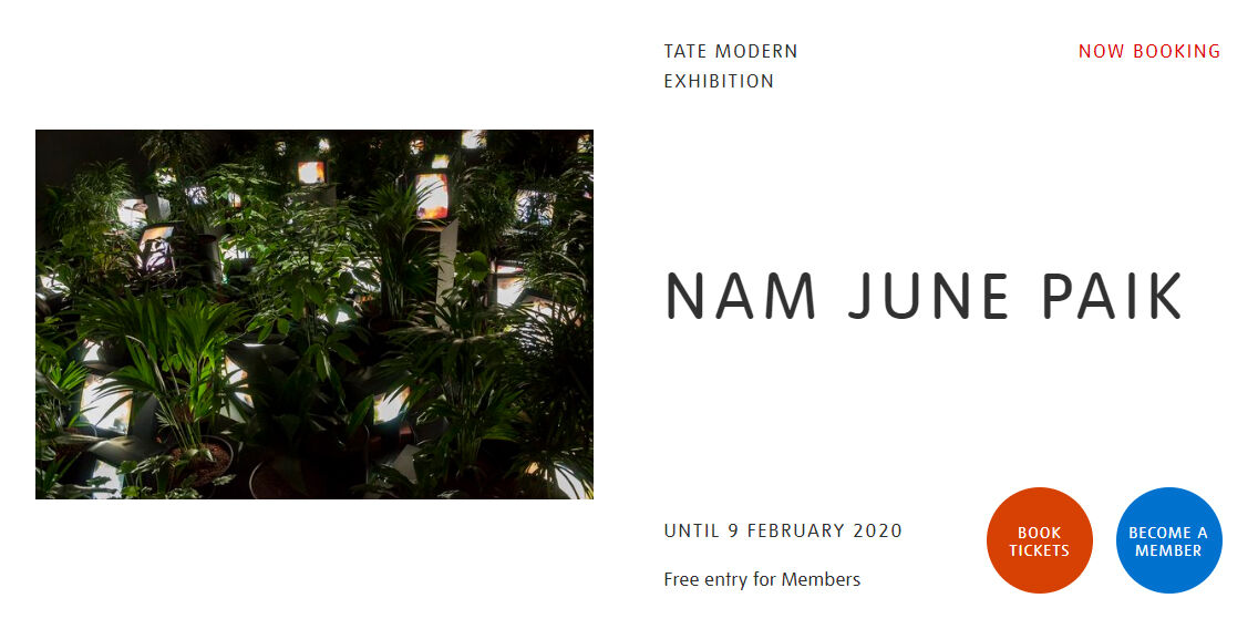 その名前に相応しく、ナム・ジュン・パイクという作家の始まりから終わりまで見れるこの展覧会は、TATE MODERNでは来年2月9日まで開催しています。その後展覧会はサンフランシスコ近代美術館の他、アメリカ、オランダ、シンガポールの美術館を巡回する予定となっているので、イギリスに行く機会はなくともシンガポールやアメリカなら、という方には是非とも目を付けておいていただきたい展覧会です。