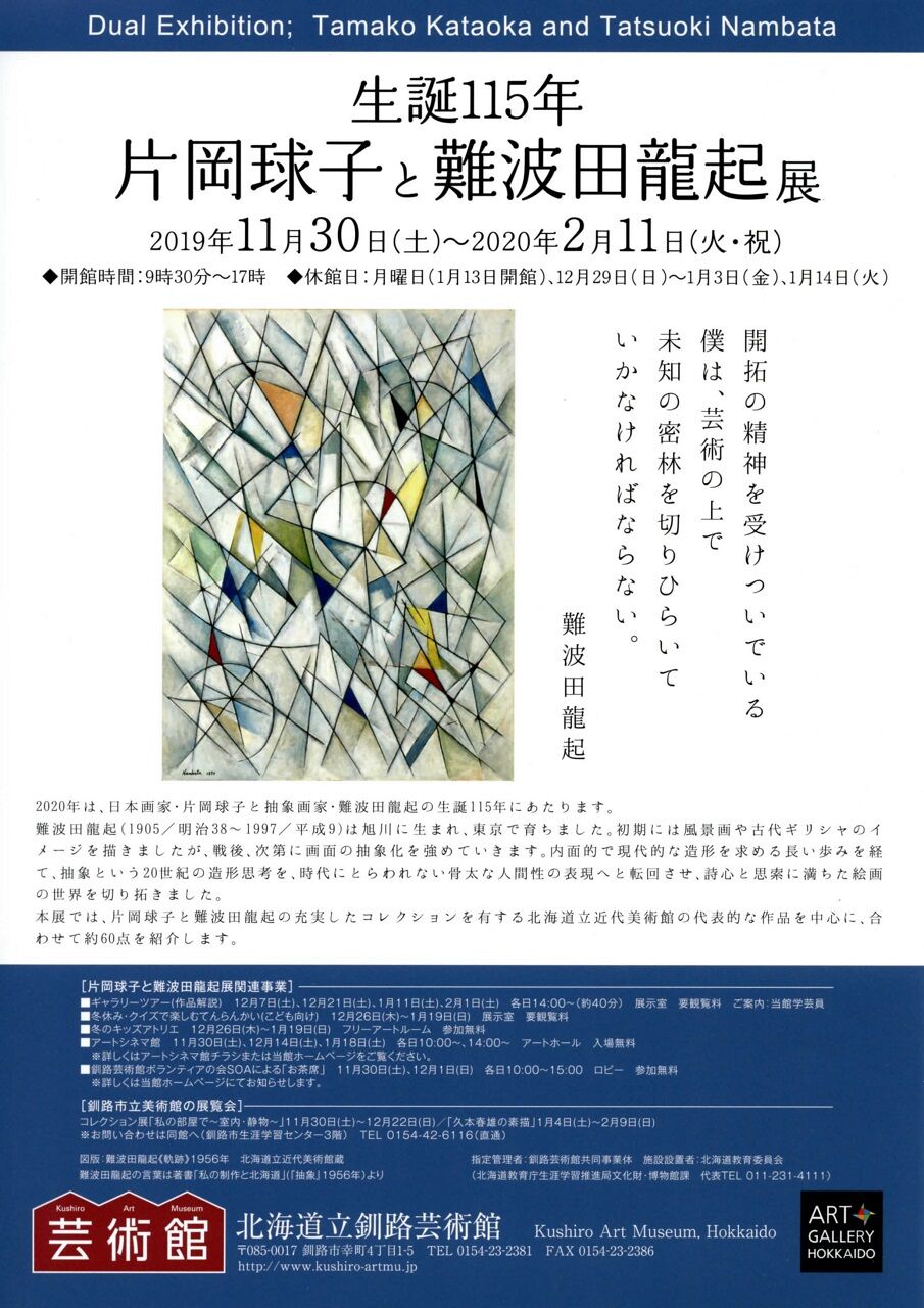 偶然ですが、北海道の二つの美術館でも、難波田先生の作品が展示されていますので、ご紹介します(チラシのスキャン画像をクリックしてください。拡大されて読みやすくなります)。
