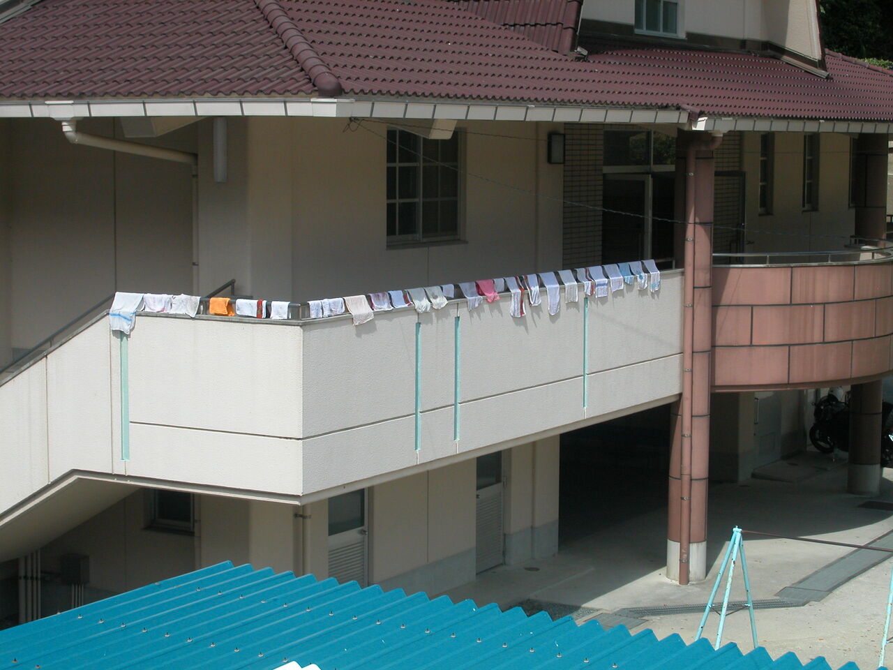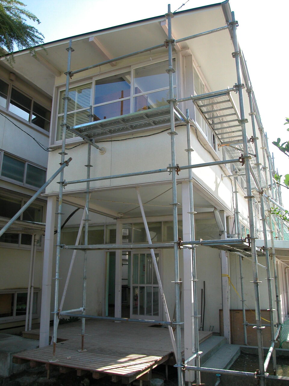 20191214花田佳明先生043東校舎端部の様子。2階廊下屋根の修理が終わっている