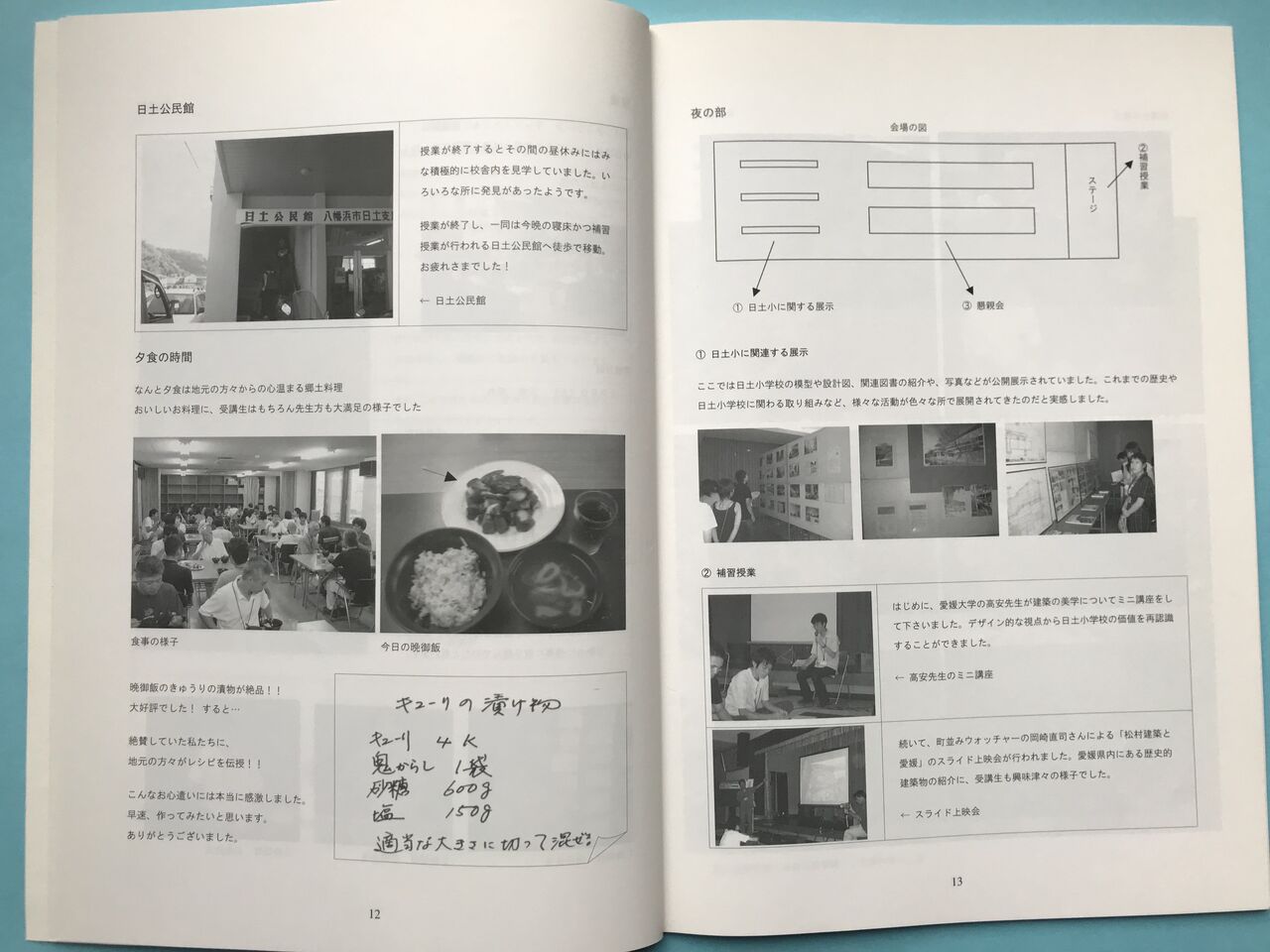 今回の企画をまとめた報告書『夏の建築学校 日土小』(日本建築学会四国支部学校建築探求団特別委員会)は翌2005年の1月に刊行された。これもきわめて盛りだくさんの内容だ。