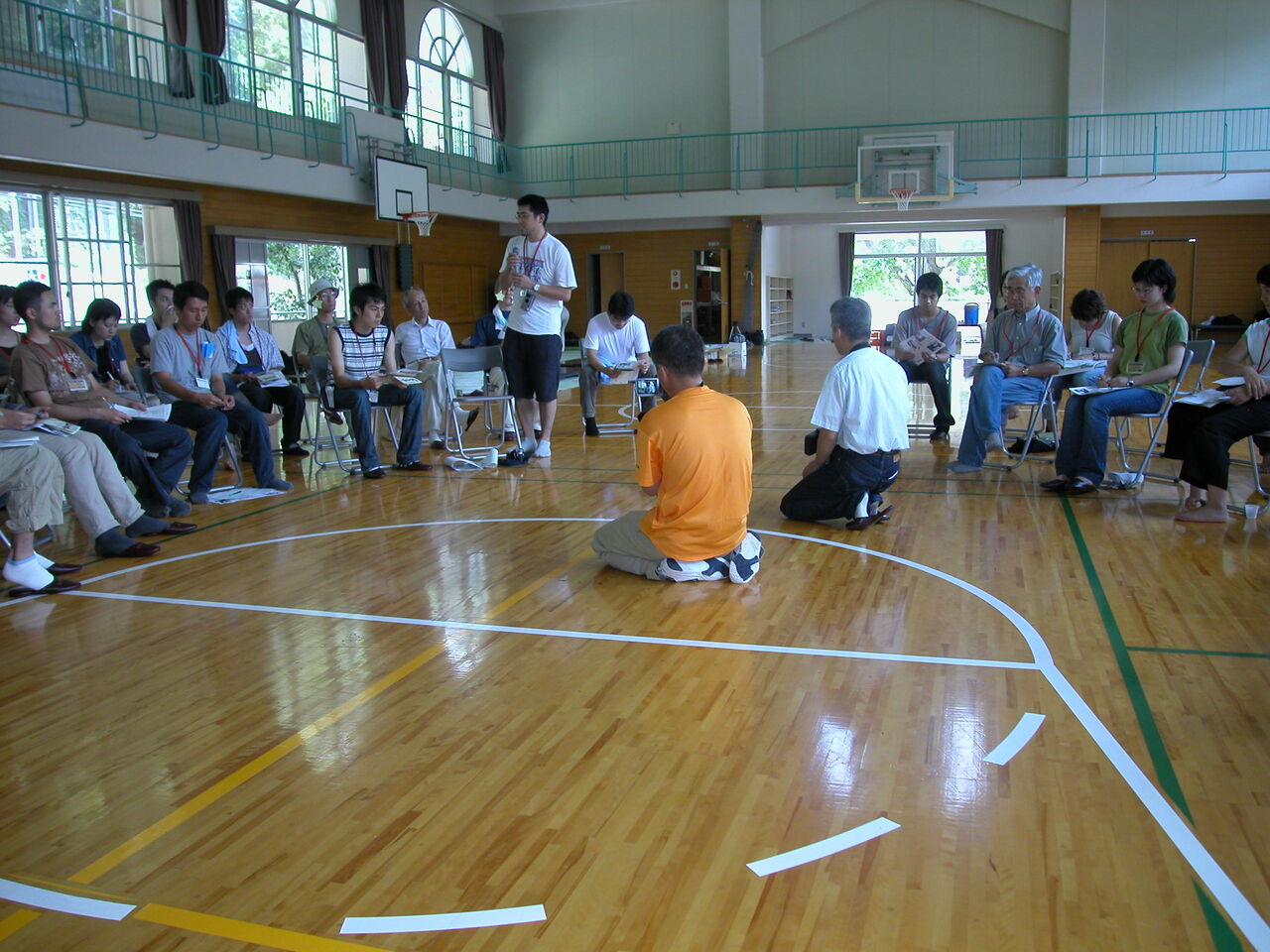 これで全ての行事が終わり、最後は体育館で閉校式。まず参加者が輪になって座り、2日間を振り返りながら、それぞれの感想を述べ合った。嬉しいことに、日土小学校と2日間の経験を高く評価し、日土小学校の存続を望む発言が続いた。
