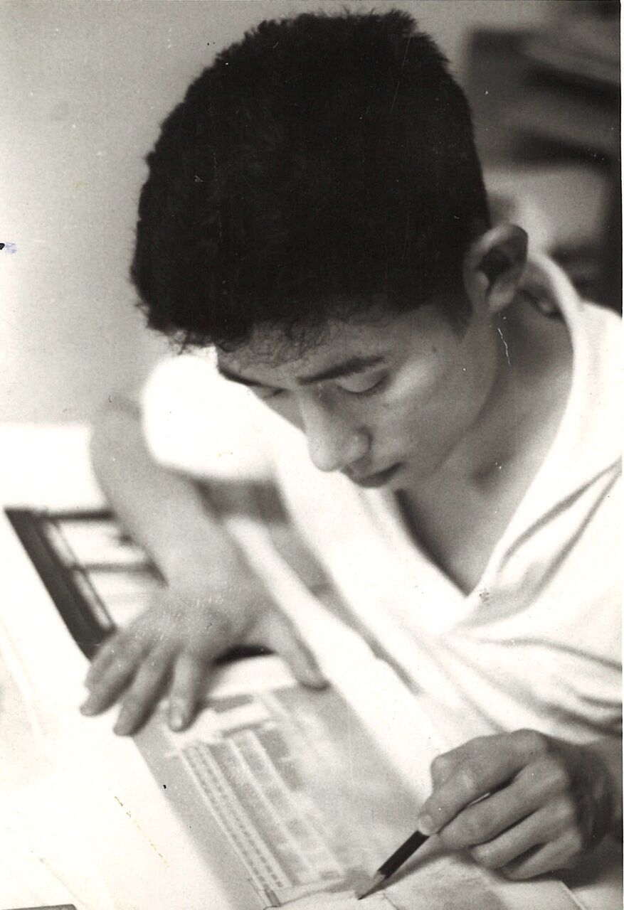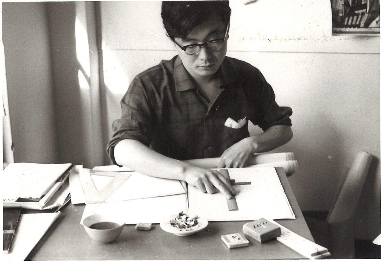 『建築』の編集・出版体制が独立した当初の、イセビル編集室で。撮影者は確定できないがおそらく山鹿文雄。平良敬一