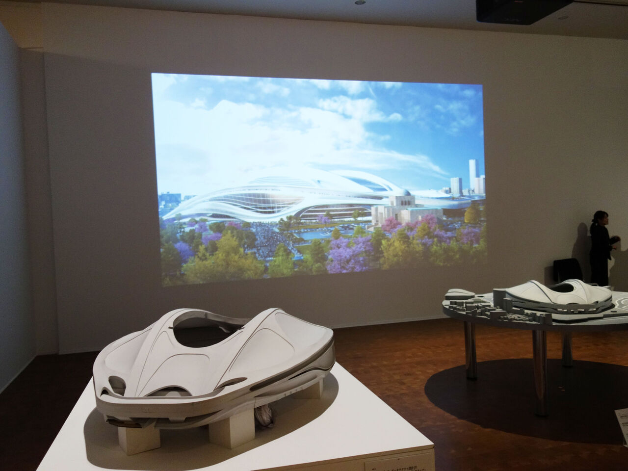 そして、「本展の構想が明瞭になった」と云うザハ・ハディド・アーキテクツ+設計JVの新国立競技場プラン白紙撤回の場に至り、スペースショップを連想させる構造用風洞実験模型の美しさに見とれた。問題の詳細に立ち入る知識も情報も持ち合わせない身ながら、「社会的な条件や制度による不実施」に、建築の意味を問い合わせたい気持ちが増大した。地球を生命の乗り物と捉えるように、建築を移動する希望、風にあがらう乗り物と見てもよいのではないか。なので、設計者の死とともに、時代が閉じられてしまったのは悲しい事である。先のオリンピックが催された1964年は遠く、疲弊した日本に祝福されるべき未来は無くなってしまった……。と思いたくないのだけど。