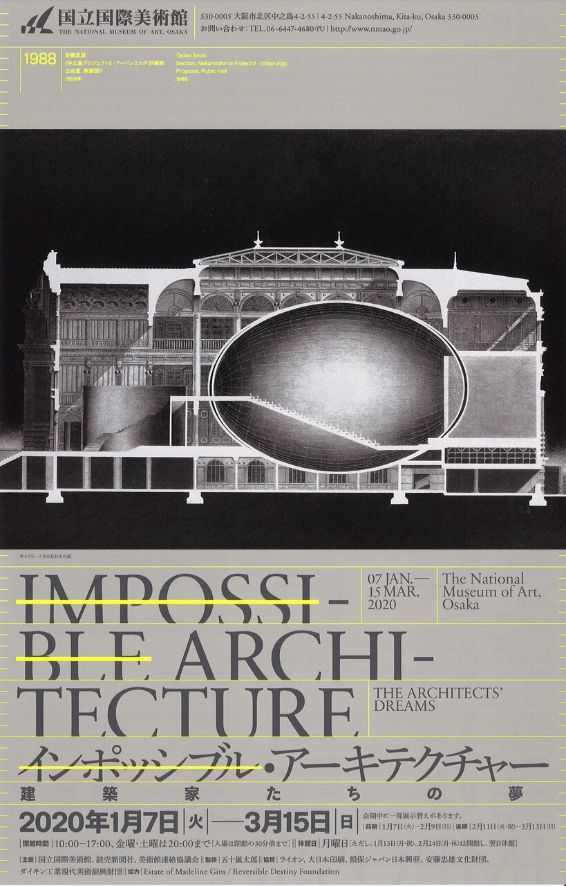 ●ときの忘れものは大阪の国立国際美術館で始まった「インポッシブル・アーキテクチャー ―建築家たちの夢」に出品協力しています(~3月15日)。安藤忠雄「中之島プロジェクト Ⅱ[アーバンエッグ2]」