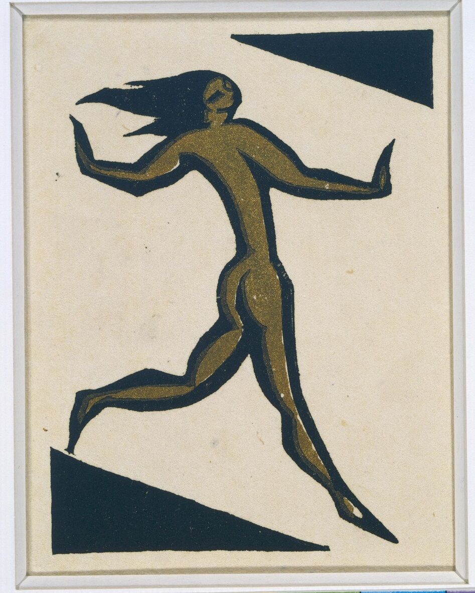 長谷川潔《金色に躍れる男 『假面』4巻4号のための木版》1915年 京都国立近代美術館蔵(きむら りえこ)