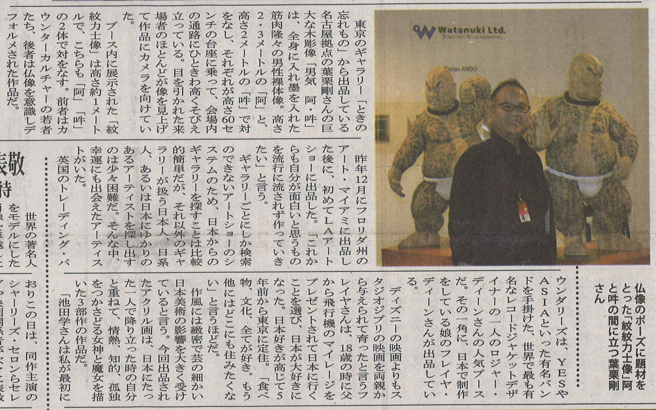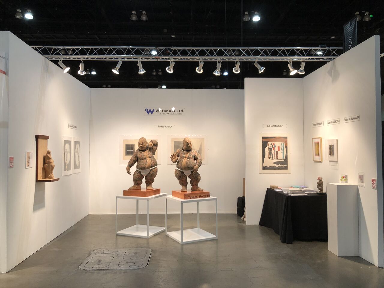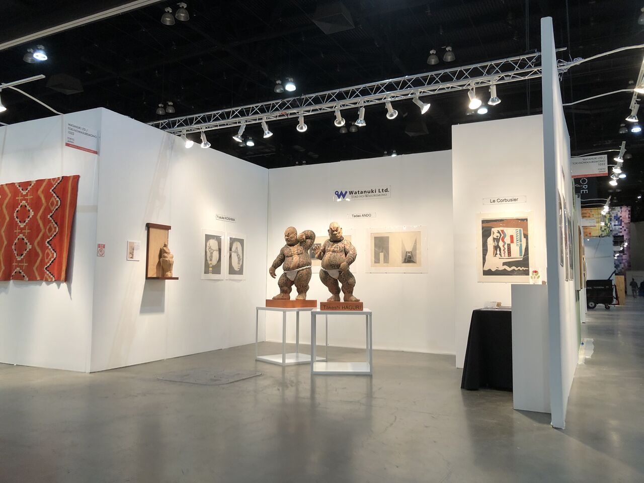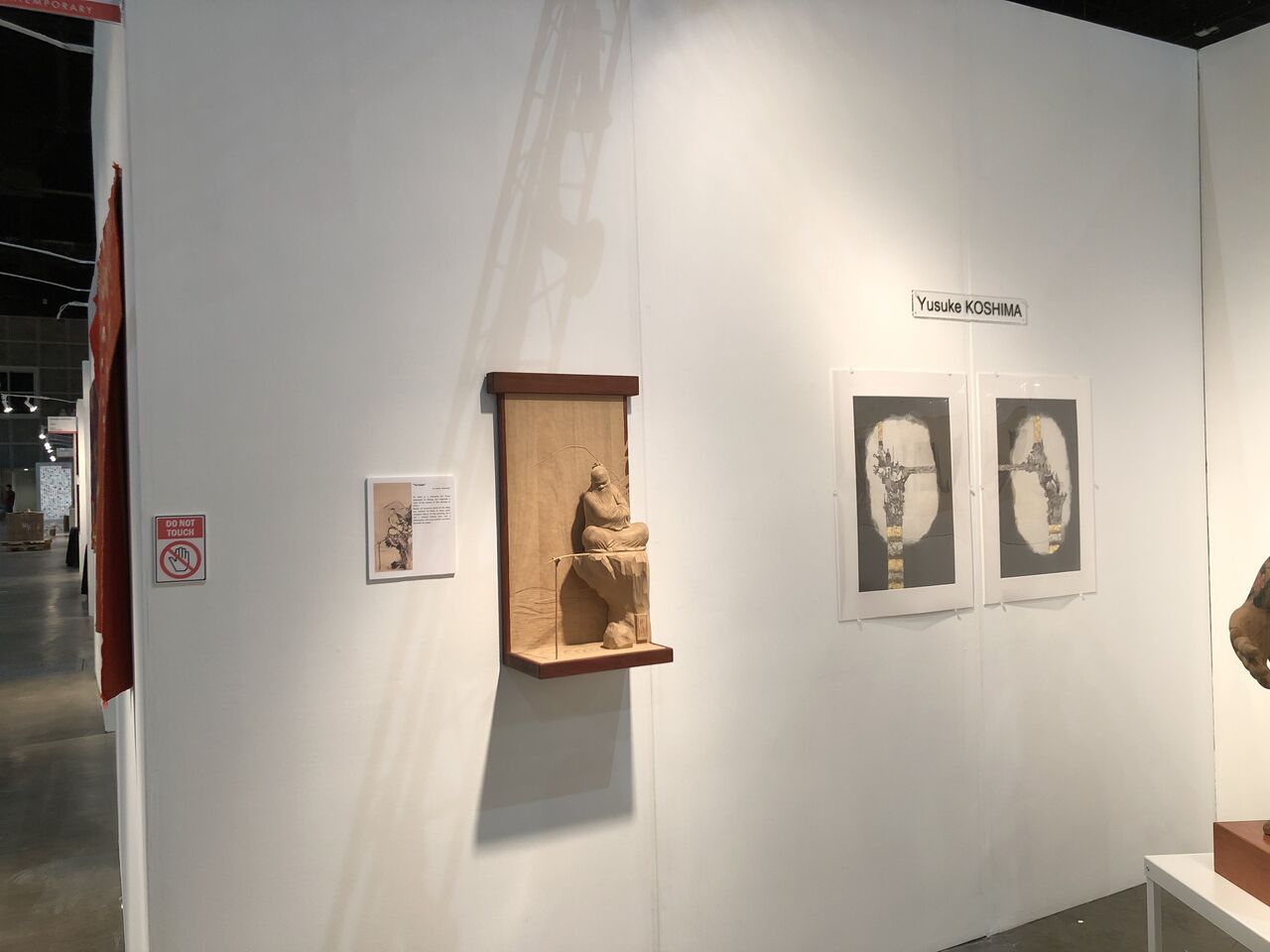 結論から言ってしまうと、葉栗先生の大作により大いに衆目を集め、地元の日系新聞の二面を飾りもしたものの、会場での販売は少額な作品に留まり、しかし提携していたArtsy 経由で東海岸のお住まいのクライアントから木彫中品2点のご注文があったりと、画廊としてはほろ苦い結果でした。
