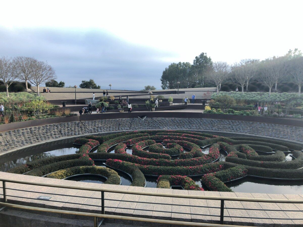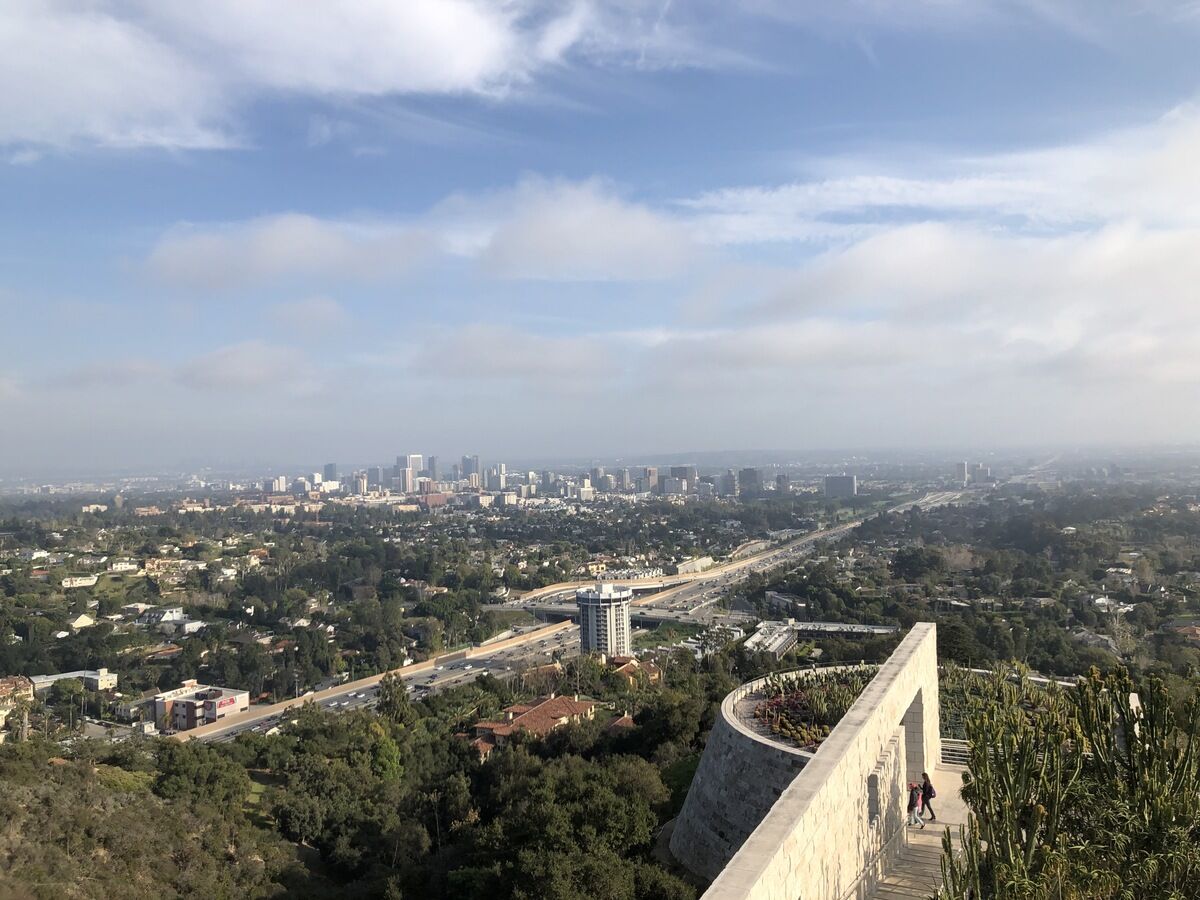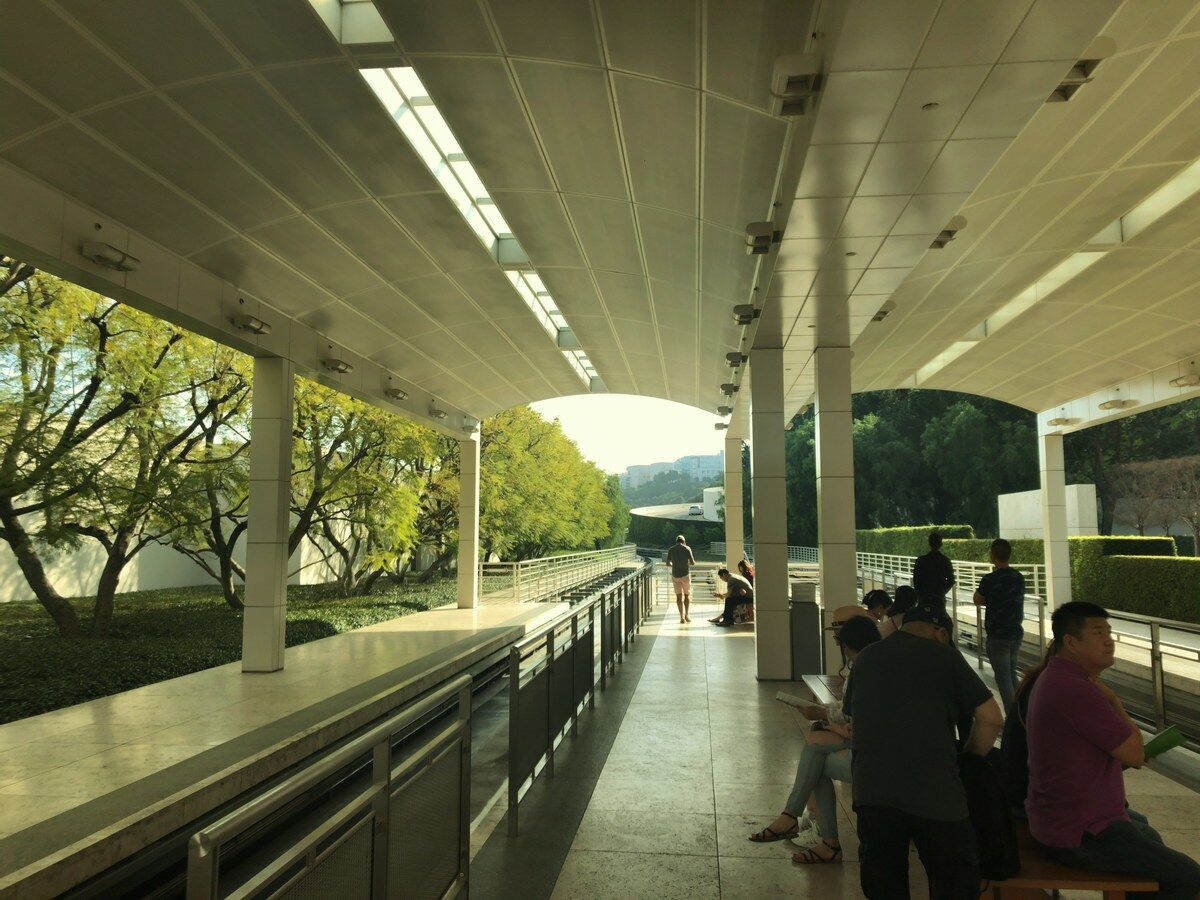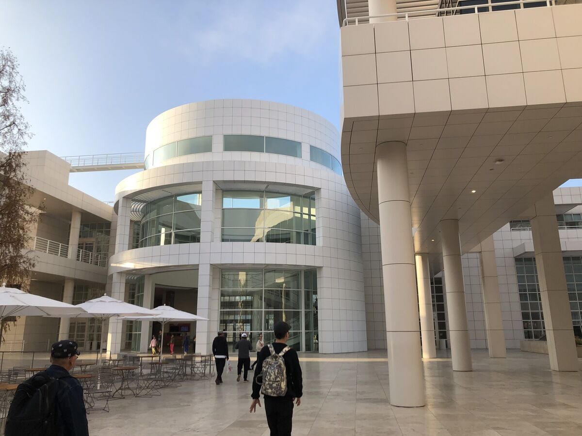 次に向かったのはリチャード・マイヤー設計による複合文化施設「ゲティ・センター」、J. Paul Getty Museum。こちらは比喩ではなく山一つが敷地となっている美術館で、敷地の入り口から建物の入り口までトラムに乗って移動するという広大さを誇ります。山頂に建てられた部門ごとに異なる建物からはロサンゼルスが一望できる他、屋外展示場を兼ねた庭園もあり、入場無料でゴッホやモネの作品を観れる以外にも、庭園の芝生でのんびりすることもできます。