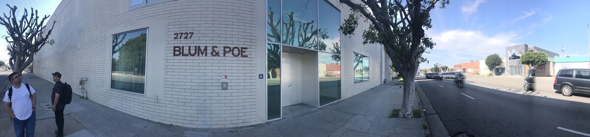 LA Art Showにも出展していたBLUM & POE。パノラマ撮影したせいで角地にあるように見えますが、右から左まで一直線の巨大な倉庫じみた建物です。きっと中はチェルシーのガゴシアンギャラリーみたいになってるんだろうなぁ…