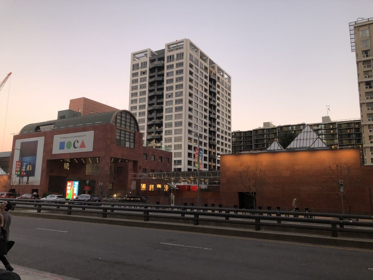 まずは先月の記事で話題にしたMOCA(磯崎新設計)。当たり前ですが、版画で見たまんまの造形で感動しました。