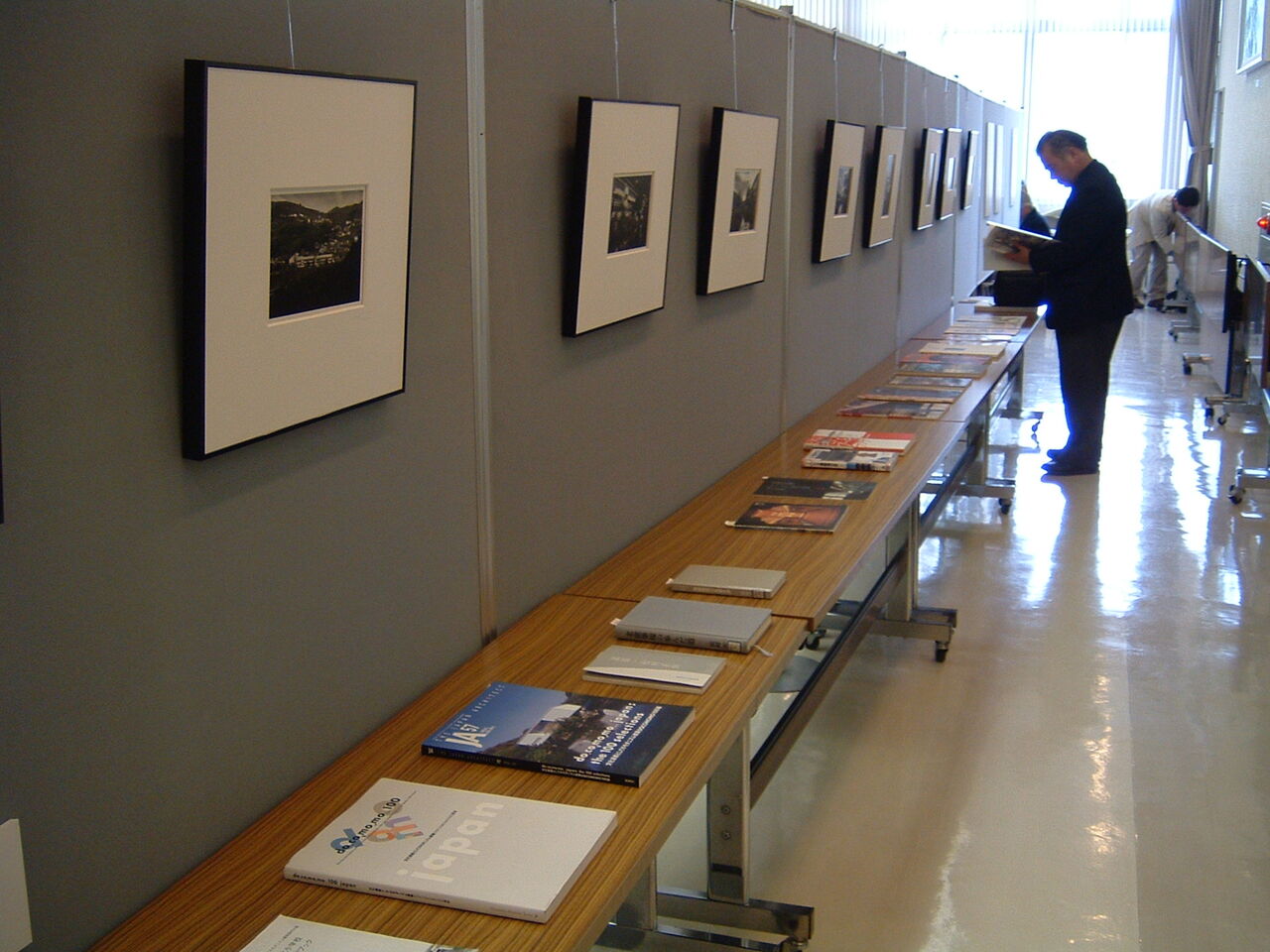 会場に展示された資料(撮影:菊池勝徳)まず私から、日土小学校と松村正恒の概要、そして今回のシンポジウムを開くに至った経緯を説明した。また、ドコモモジャパンがドコモモ本部や世界各地の支部へ日土小学校が危機的状況にあることを発信して支援を求めたところ、オランダ、イスラエル、ブルガリア、トルコ各支部からメッセージが届き、資料集に原文と訳文を収めたのでその紹介も行った。