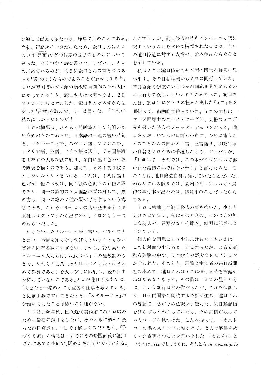 さて、今から50年前の1970年9月28日~10月10日、南画廊(中央区日本橋通3-3丹平ビル2階)で「瀧口修造とジョアン・ミロによる詩画集」展が開催されました。