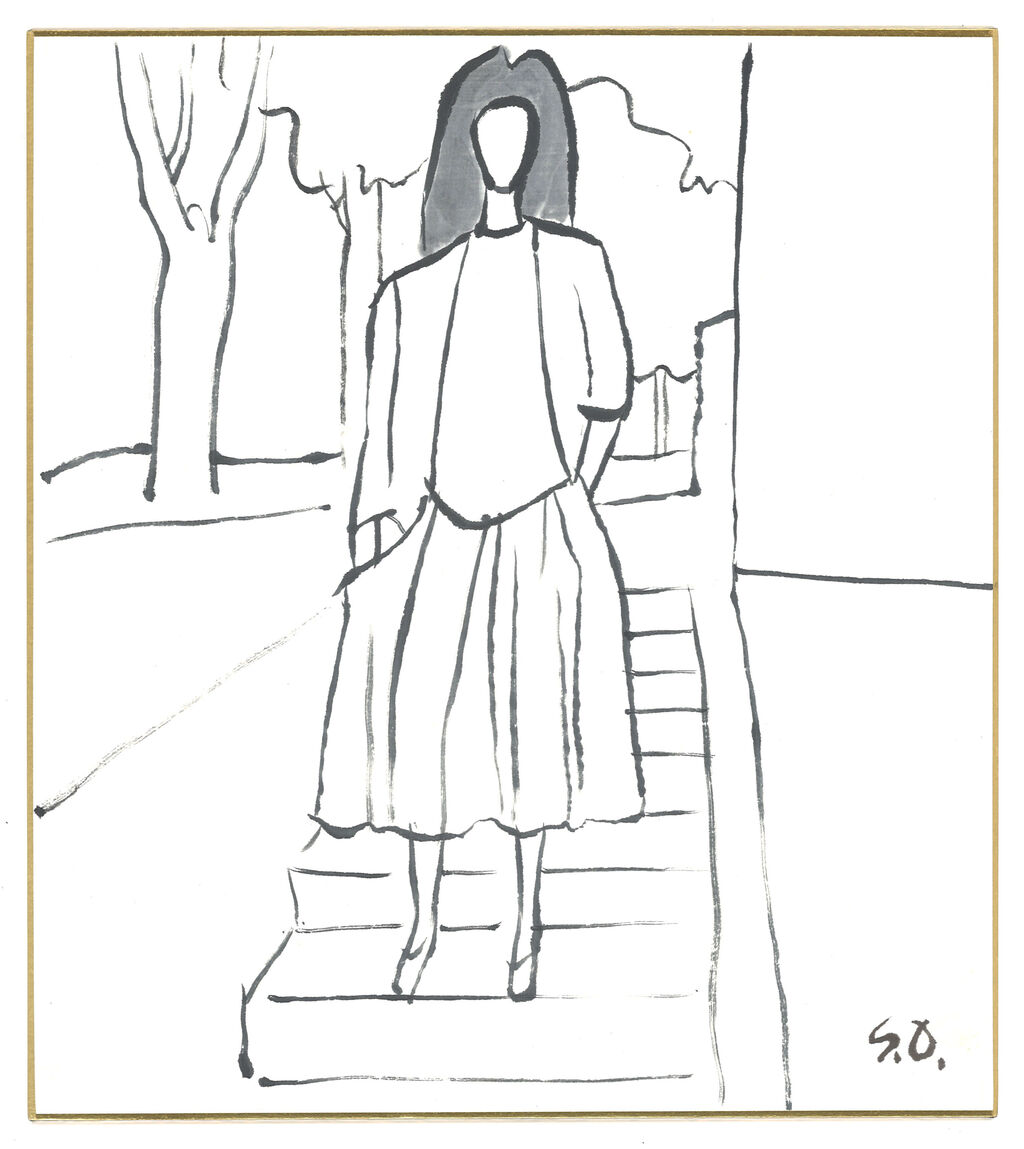 色紙に水彩 シートサイズ:24.2×27.2cm サインあり