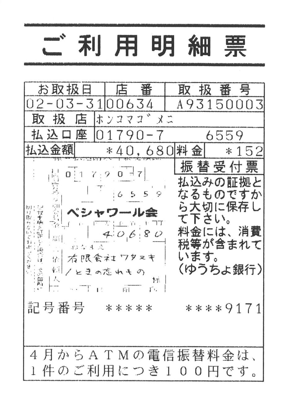 ときの忘れものが2002年以来、細々と続けてきた支援活動ですが、先月3月の支援頒布会では5点が購入され代金37,000円とM氏からの寄付金3,680円の合計40,680円全額をペシャワール会に送金いたしました。