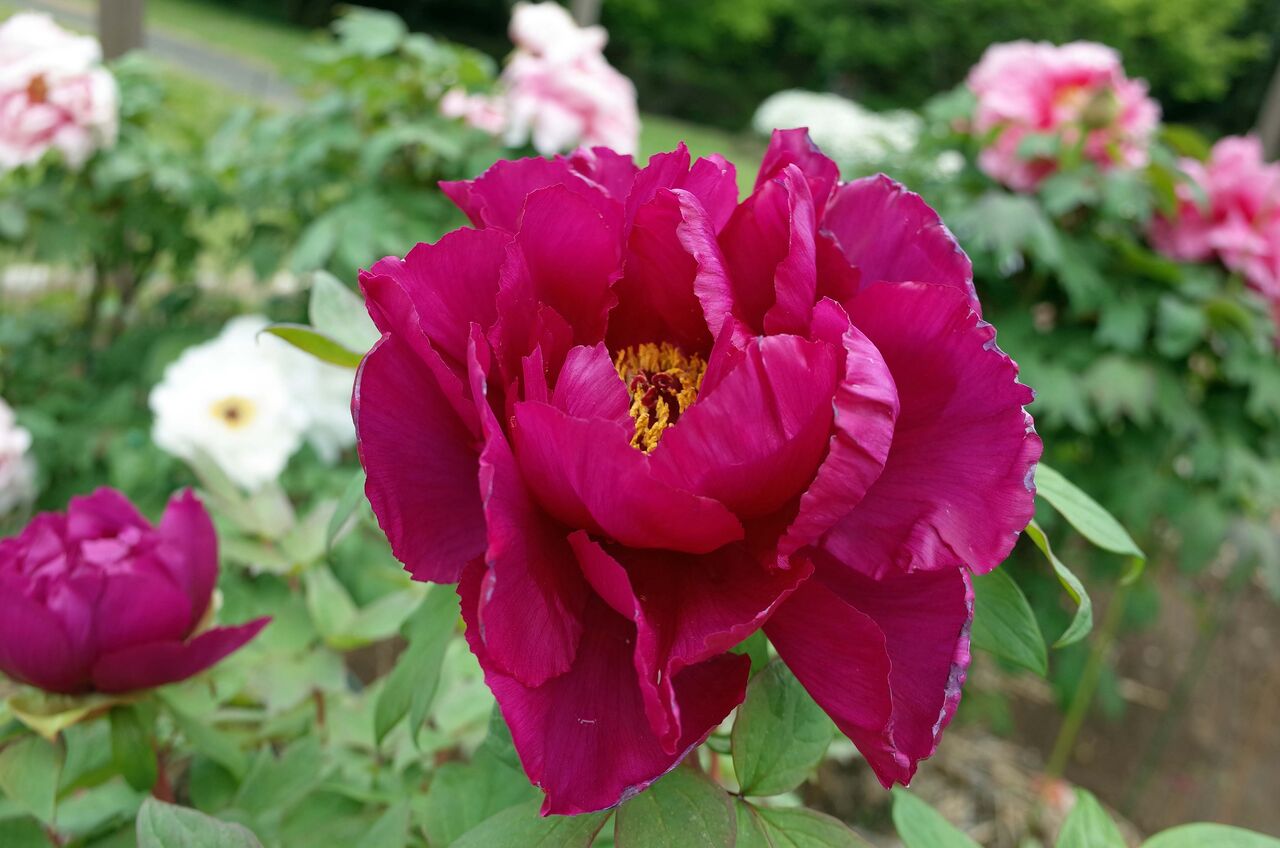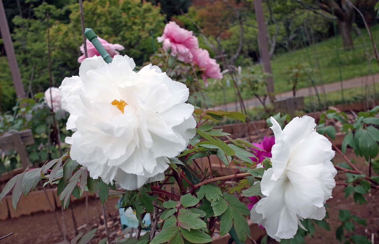写真は近所の公園で咲いていた牡丹です。先週からの雨で、かなり散っていましたが
